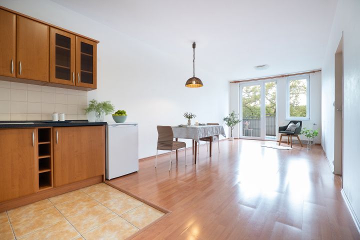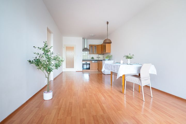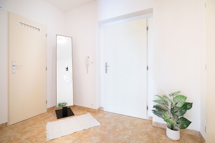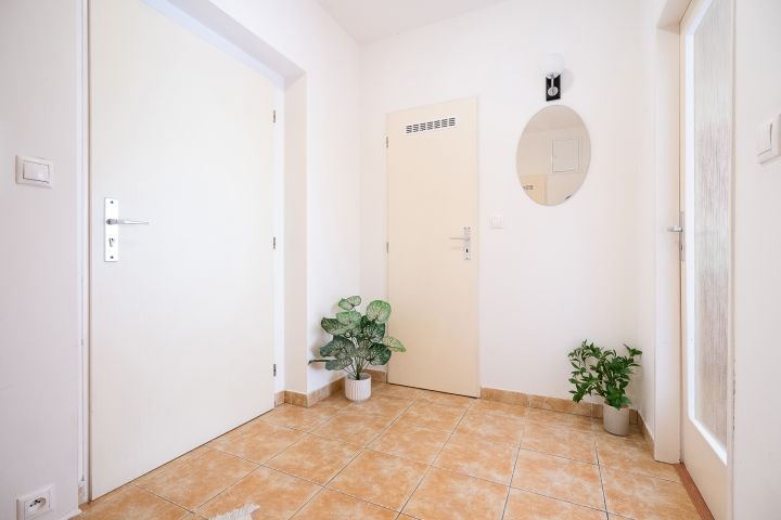 Nabízíme prostorný byt 2+kk v osobním vlastnictví, který má vše, co můžete požadovat. Disponuje komorou, garážovým stáním, sklepní kójí, spoluvlastnickým podílem na zahradě a dokonce i rozlehlém parku jen pár kroků od domu. Byt je oficiálně vedený jako 1. NP, reálně se však nachází ve 2. podlaží, což zajišťuje příjemný výhled a větší pocit soukromí. Je zajištěn bezbariérový přístup. Lokalita: ulice Bechlínská, Praha 18 – Letňany.