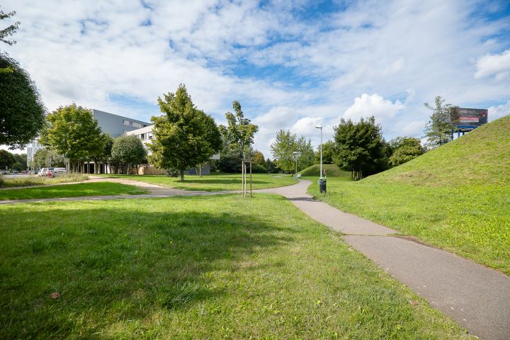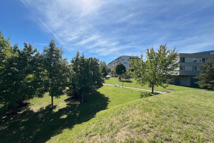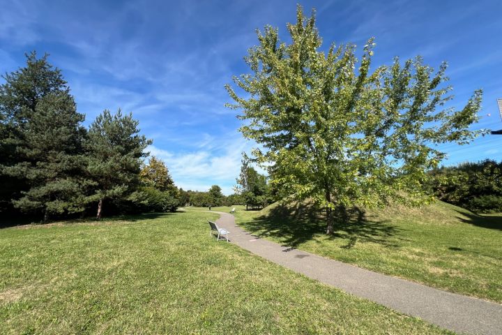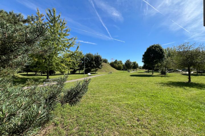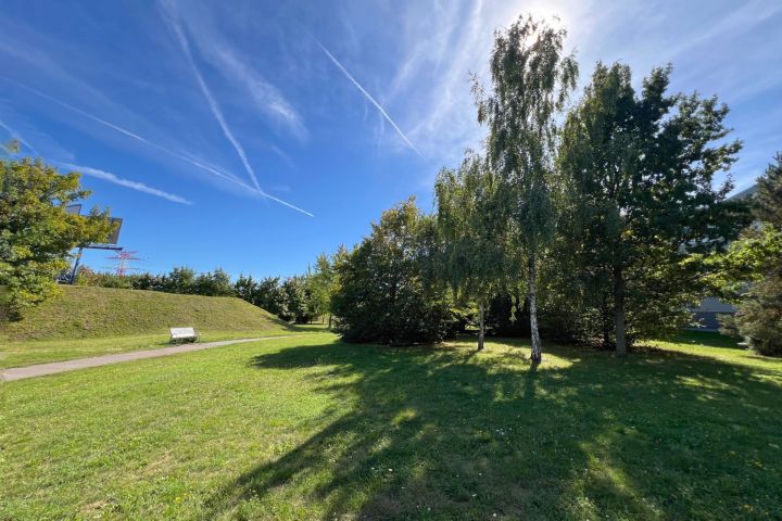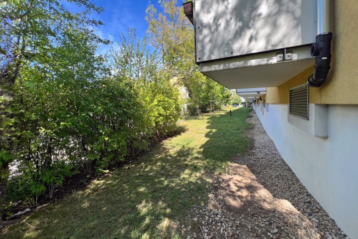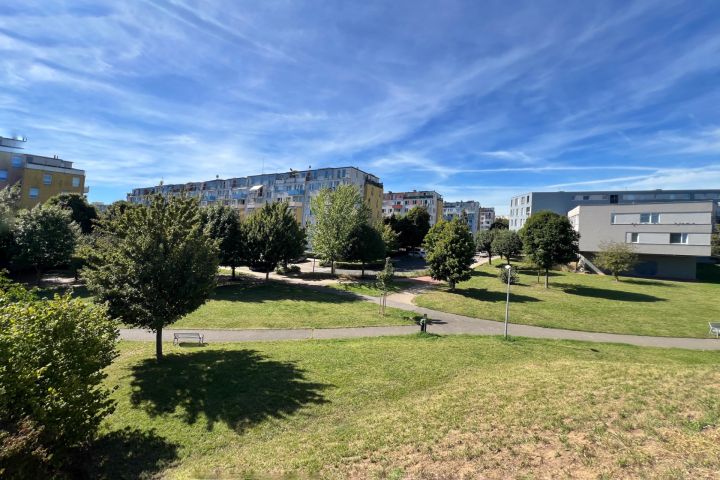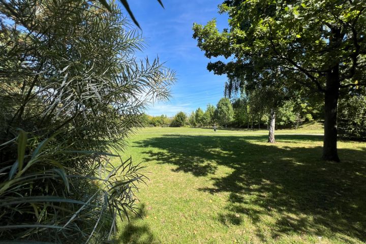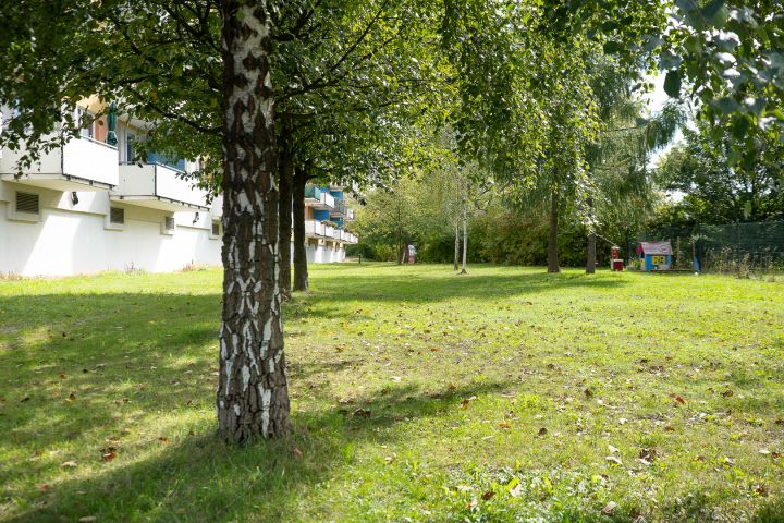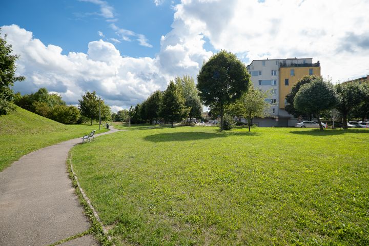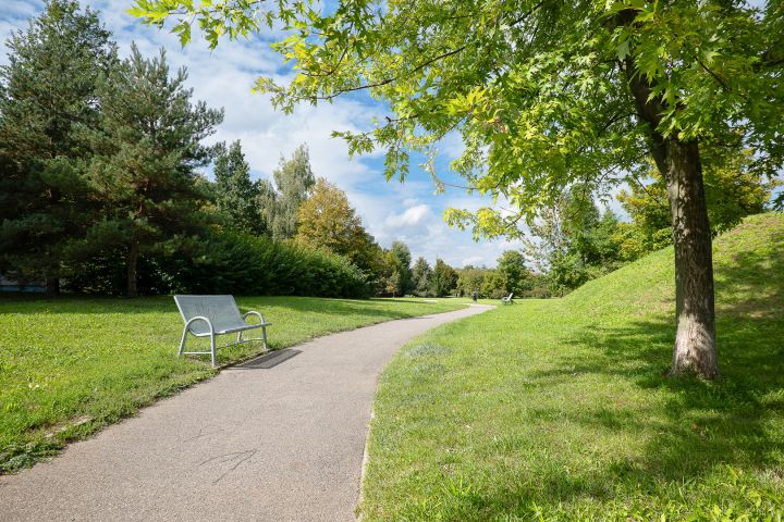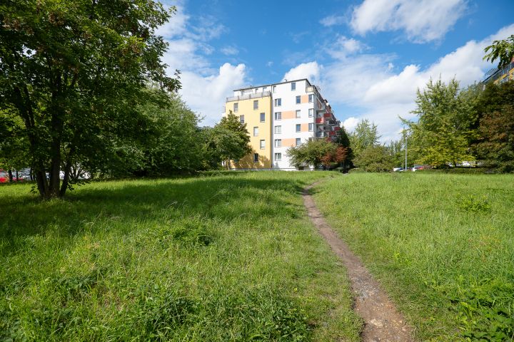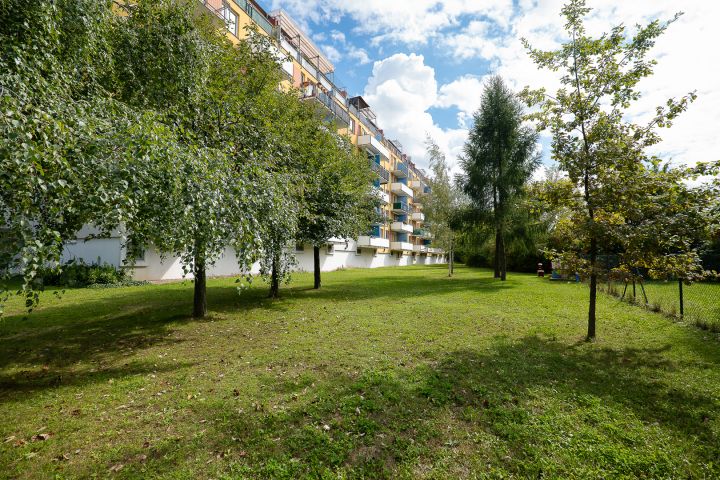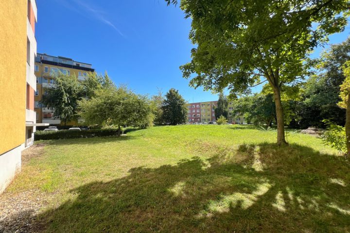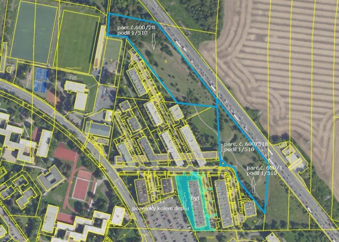 K bytu náleží také podíl na okolních pozemcích. Na západní straně domu je udržovaná zahrada se vzrostlými stromy. V těsné blízkosti se rozkládá rozsáhlý park s bohatou zelení a lavičkami – ideální pro procházky se psem, sport i relaxaci. Váš podíl na něm činí 1/510.