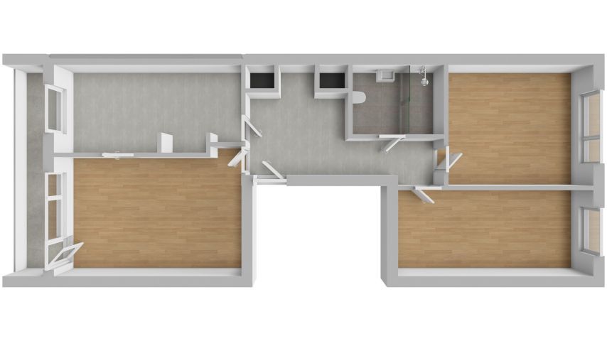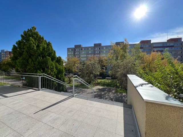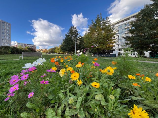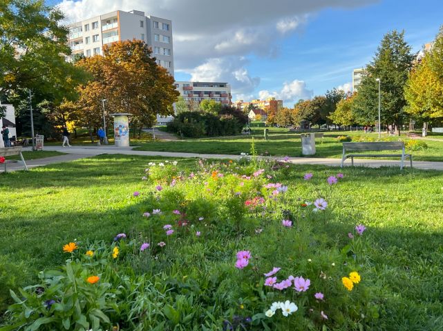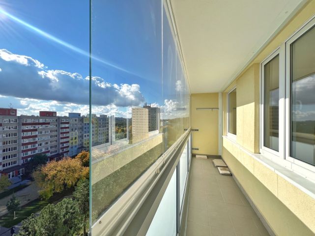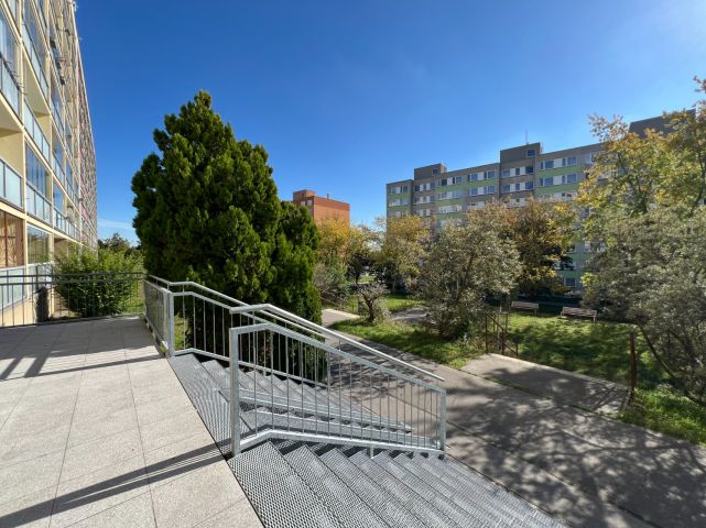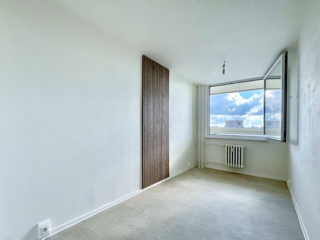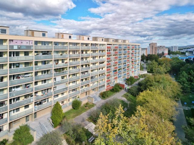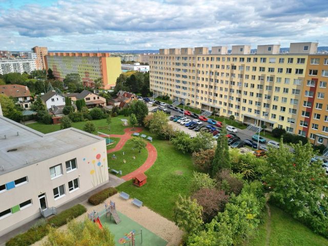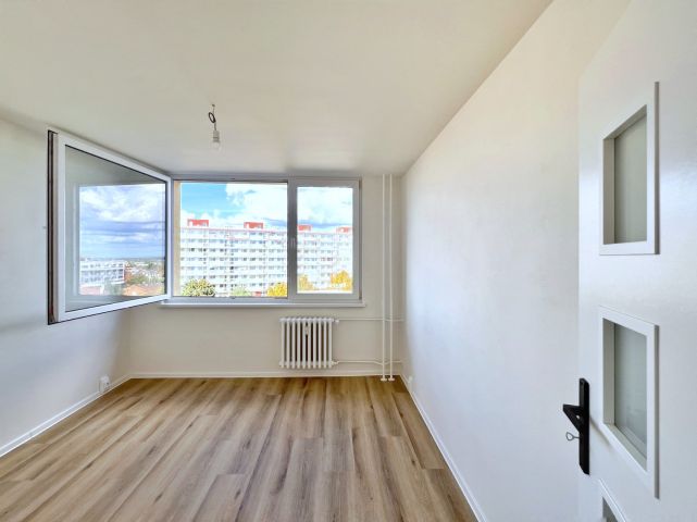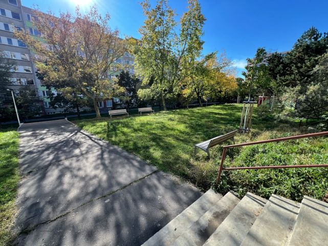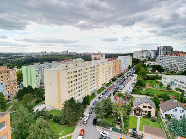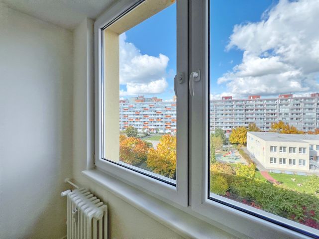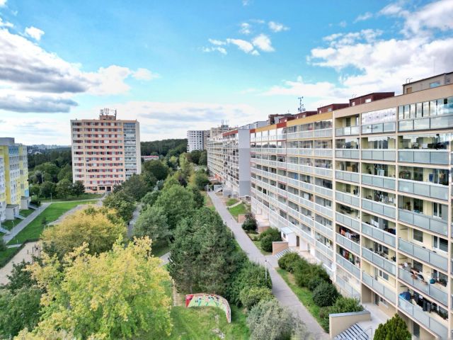 Obývací část je perfektně separovaná od relaxační/spací části. Okna orientovaná na jih: obývací pokoj s kuchyní. Na sever: dva pokoje. Díky vyššímu patru jsou všechny místnosti velmi světlé. Protější panelové domy jsou vzdáleny 100 m a 50 m. Okna severních pokojů nabízejí otevřený široký výhled na nízkou zástavbu domků, mateřskou školu s přilehlou zelení se sportovišti. Jižní okna nabízejí výhled do vzrostlé zeleně s lavičkami a dětským hřištěm.