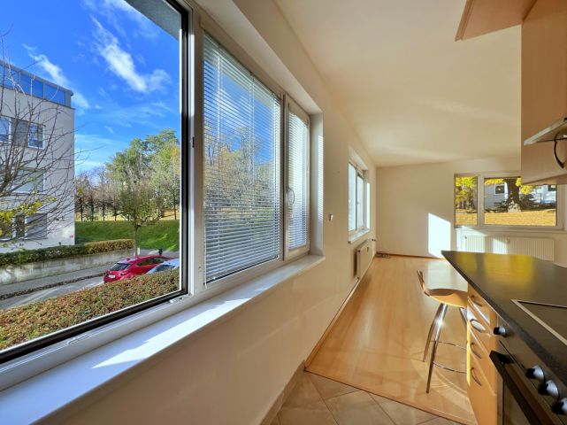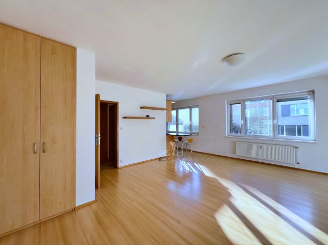 V této garsonce o velikosti téměř 2kk si na na nedostatek oken určitě stěžovat nebudete. Nabízíme vám dlouhodobý pronájem prostorného bytu 1+kk u metra Prosek v bytovém domě z roku 2006 na ulici Trmická, Praha 9 Prosek. Součástí pronájmu je parkovací stání za blokem (13 m²). Byt o výměře 46,5 m² se nachází v 1. NP pěti podlažního domu.