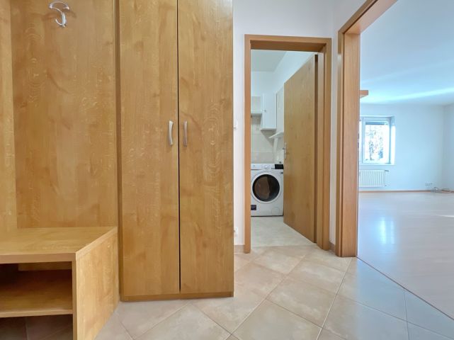 Bezpečnostní dveře NEXT, botník na míru. Dále 3 vestavěné prostorné skříně s regály i se závěsnou tyčí. Plastová okna opatřena žaluziemi. Koupelna vybavena pračkou se sušičkou na 7 kg prádla. Kuchyňská linka s digestoří, sklo-keramickou deskou, horkovzdušnou troubou, zabudovanou malou lednicí s mrazákem. Vytápění dálkové. Není plyn. Byt je zabezpečen alarmem.