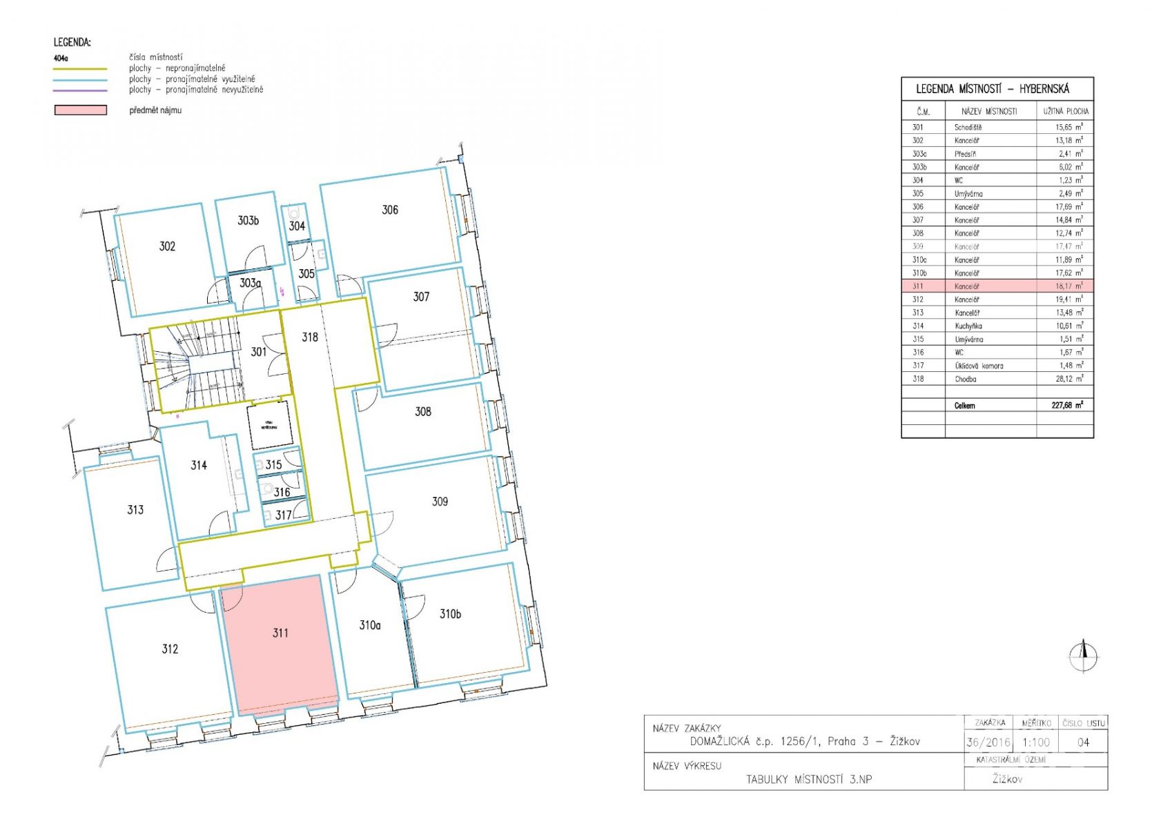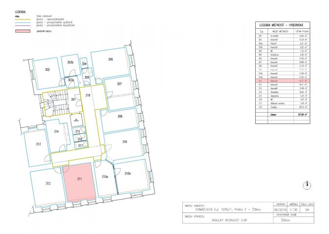 (3.NP, kanceláře č. 311) – 1× kancelář