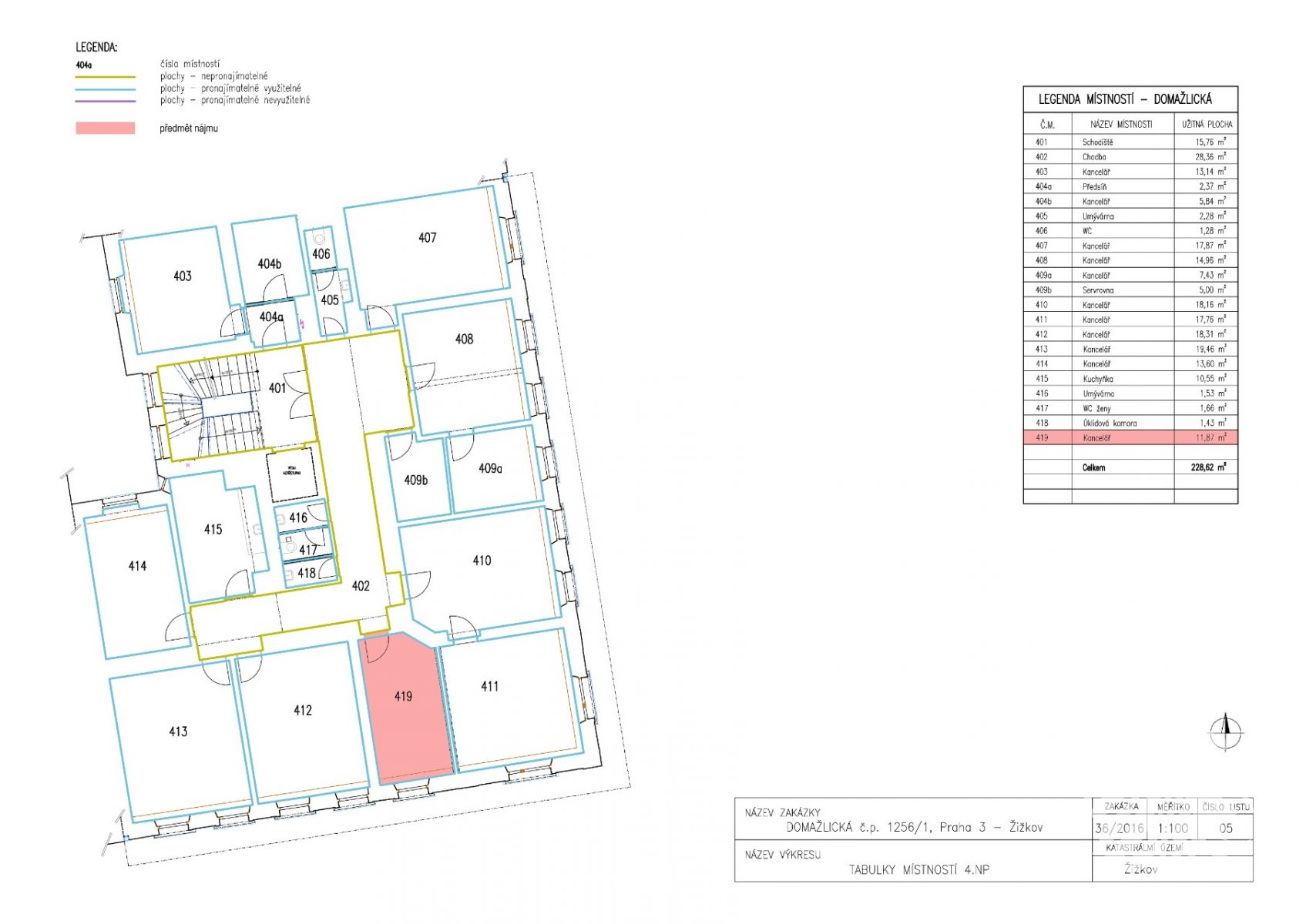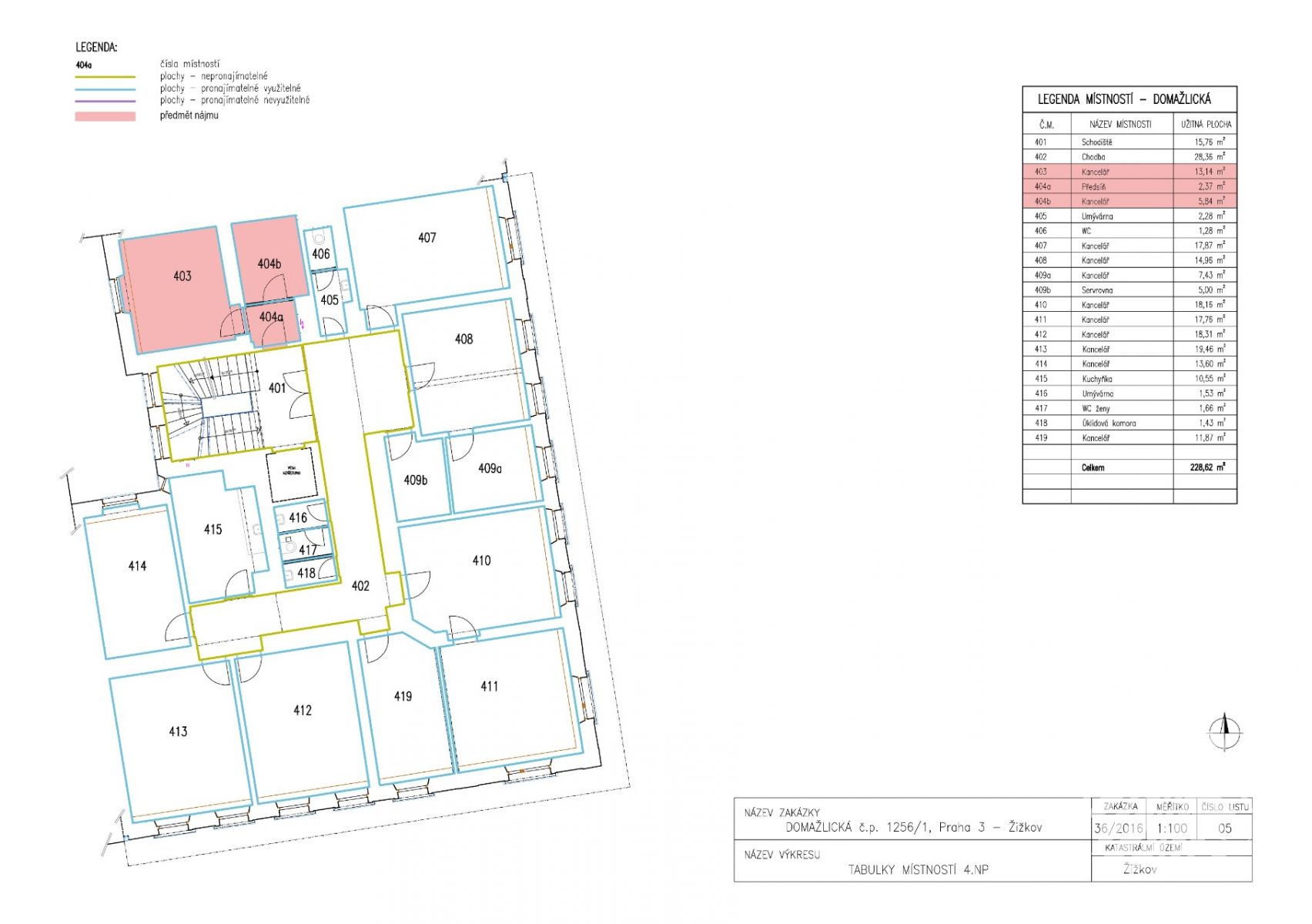 (4.NP, kanceláře č. 403,404 a+b) – 1× kancelář + 1× sklad