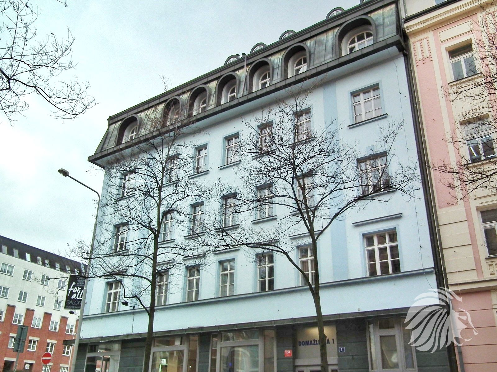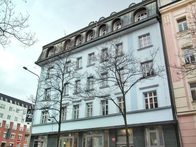 Kanceláře v oblíbené lokalitě horní části Žižkova, v rohové kancelářské 6 podlažní budově na ulici Domažlická, Praha 3 Žižkov(roh ulic Jeseniova a Domažlická). Klidné, zato velmi dobře dostupné místo. Busem stanice Černínova – 4 minuty na Florenc metro "C a "B, tramvají stanice Biskupcova. Výhled do parku Parukářka. Možnosti příjemného posezení a obědů v mnoha restauracích a kavárnách v okolí. Relaxace po práci v parku Parukářka a na kopci Vítkov. Fotografie: vybrané ukázky z celého domu.
