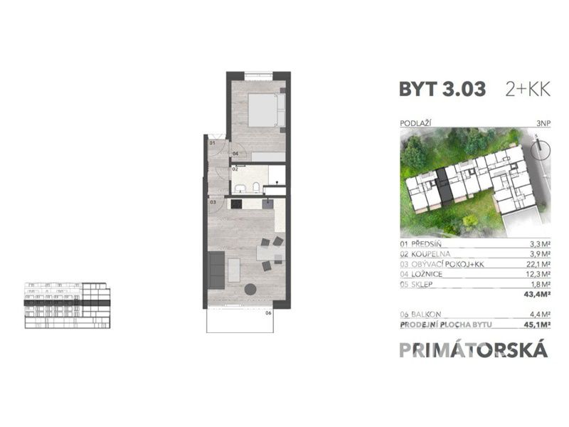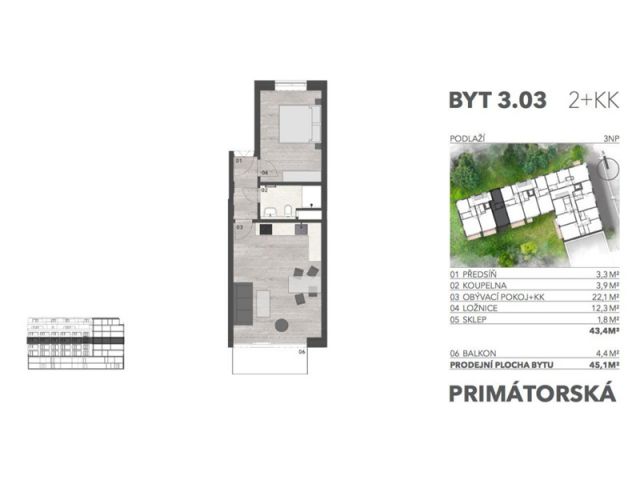 Dovolujeme si vám nabídnout byt 2+kk s balkónem v novostavbě projektu Bytového domu Primátorská. Byt se nachází ve 3.nadzemním podlaží 7 podlažního domu. Garážové stání je v ceně bytu. Předání v roce 2018.