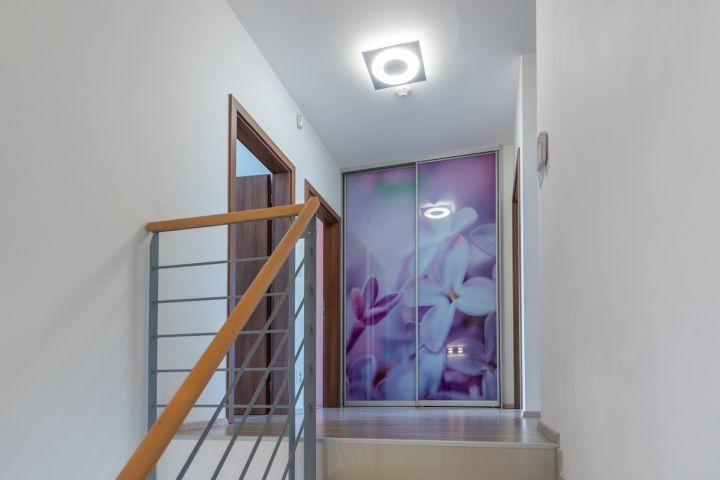 Výjimečný dvoupodlažní rodinný dům o dispozici 5 + kk s vlastním parkováním až pro 3 auta, s úžasnou zahradou a bazénem. Dům je jedinečný svým do detailů dokonale vyladěným interiérem i exteriérem, promyšleným umístěním bazénu a překrásnou zahradou. Nachází se v obci Přezletice, na samotné hranici s Prahou, na ulici Za Rybníkem. Kolaudace v roce 2014.