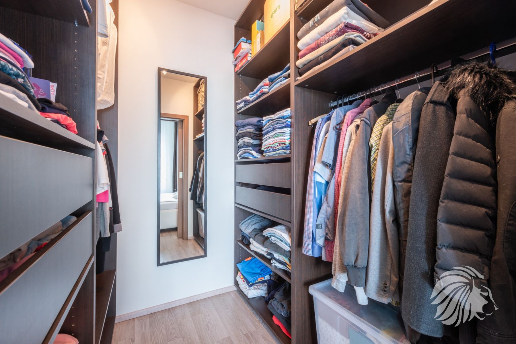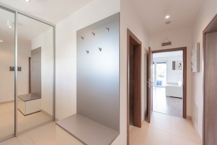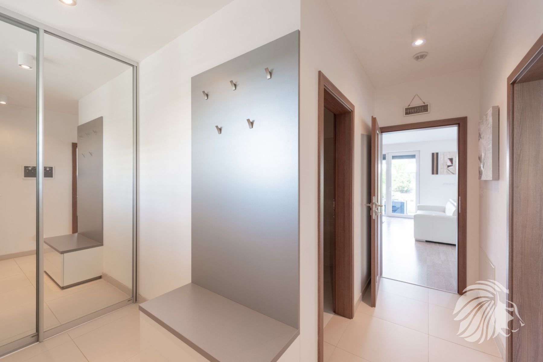 s vestavěnou skříní a botníkem.