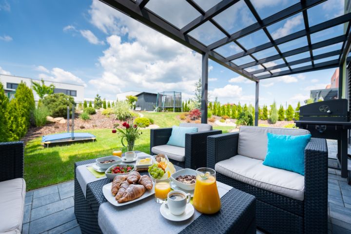 je v odpoledních hodinách díky své poloze s posezením z jedné poloviny vždy ve stínu, z druhé na slunci. Dokonalou atmosféru vytváří i regulovatelné led osvětlení na dálkové ovládání.