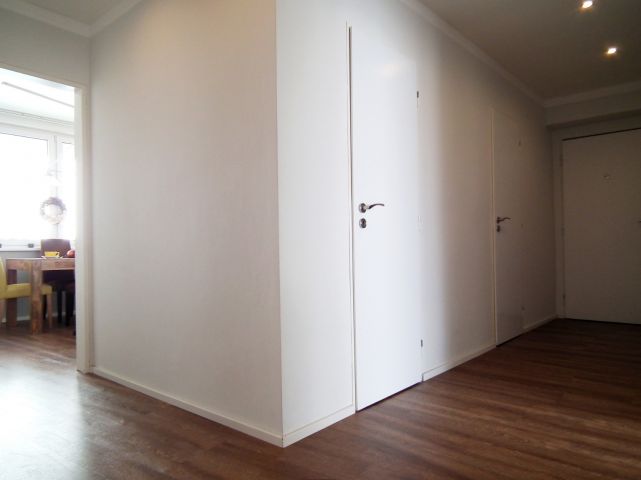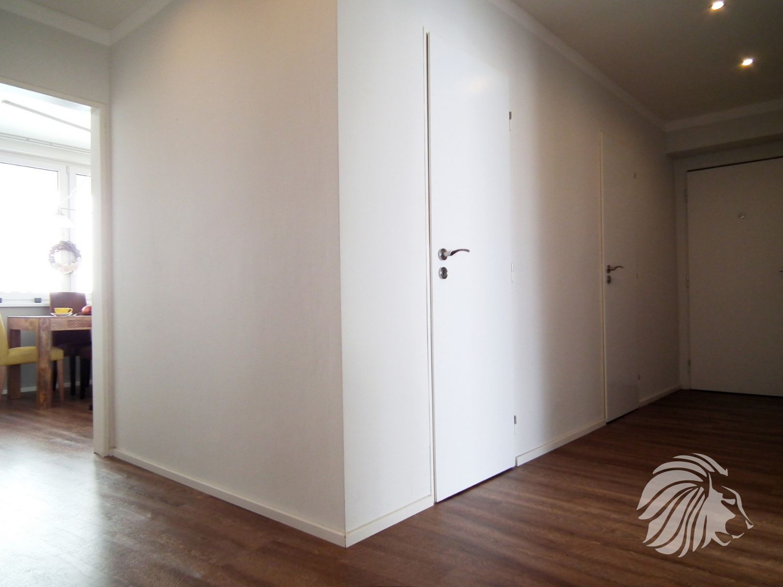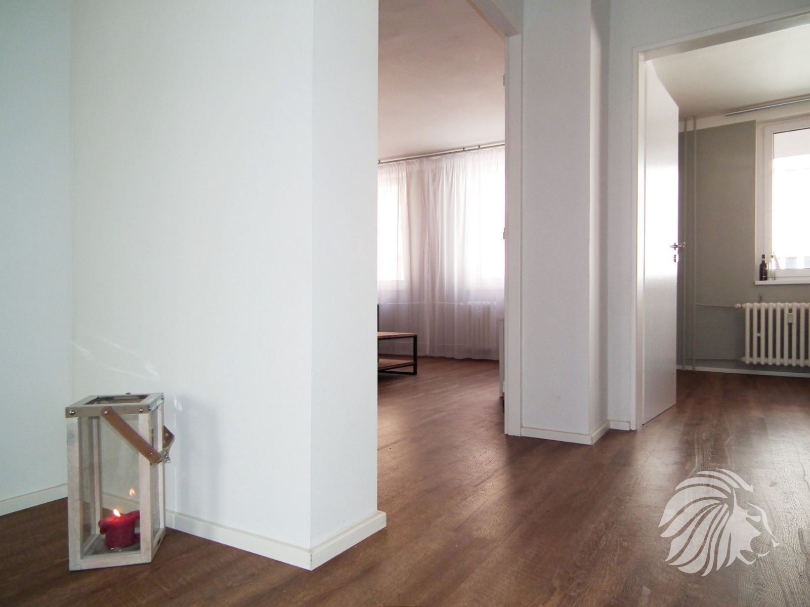 Byt prošel kompletní rekonstrukcí v r. 2015. Plastová okna, mléčné sklo lodžie v bezúdržbovém pozink rámu. Jednotná kvalitní, vysoce odolná lamino podlaha v celém bytě, hladce navazující bez prahů a přechodových lišt. Vhodná i do koupelny. Zdi jsou krásně hladké, vymalované do příjemných jemných barev. Prostorná kuchyňská linka IKEA v šampaň odstínu s vysokým leskem, moderními spotřebiči a skleněnou snadno udržovatelnou stěnou. Toaleta s umyvadlem a především nepostradatelná prostorná šatna téměř 5 m², s policemi širokými téměř 4 m po obou stranách, závěsným systémem, zrcadlem a osvětlením.