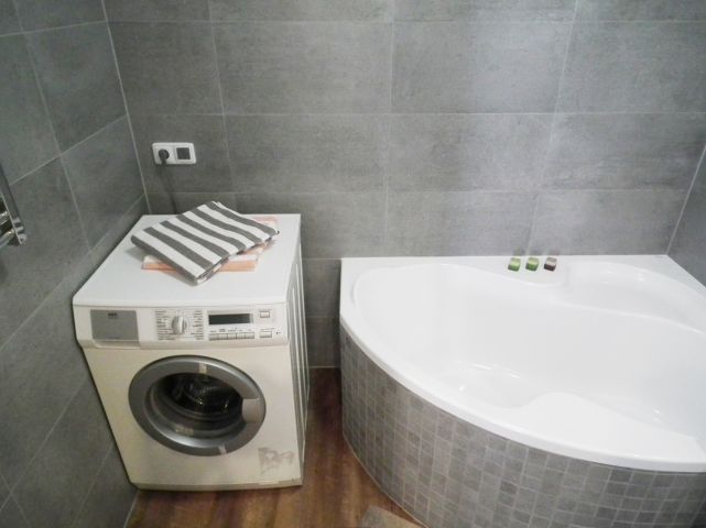 7 kg load. Kitchen (15,15 m²) with appliances, with dishwasher and fridge,