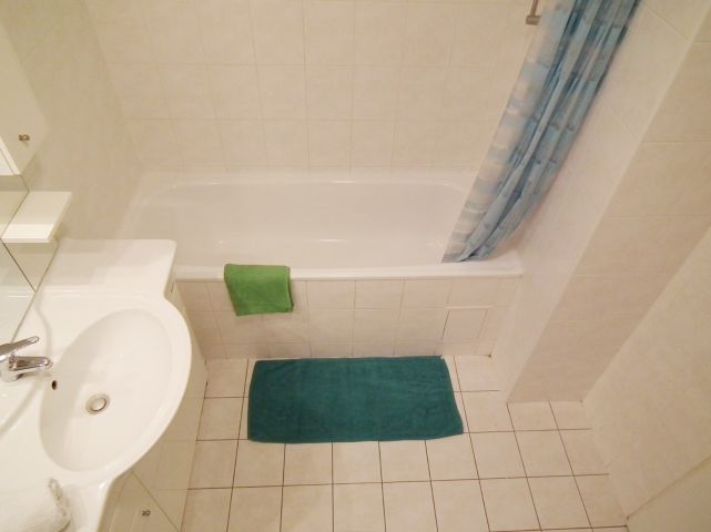 s žaluziemi. Garnýže na záclony. Velká koupelna s vanou, topným