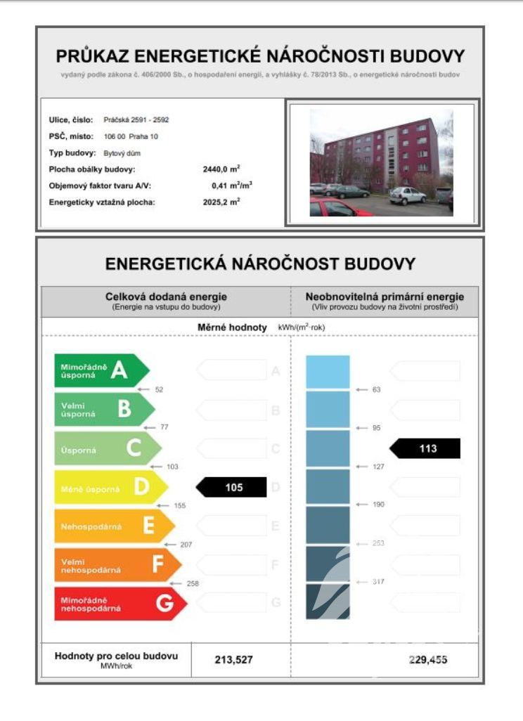 2 478 Kč + elektřina a plyn. Průkaz energetické náročnosti budovy