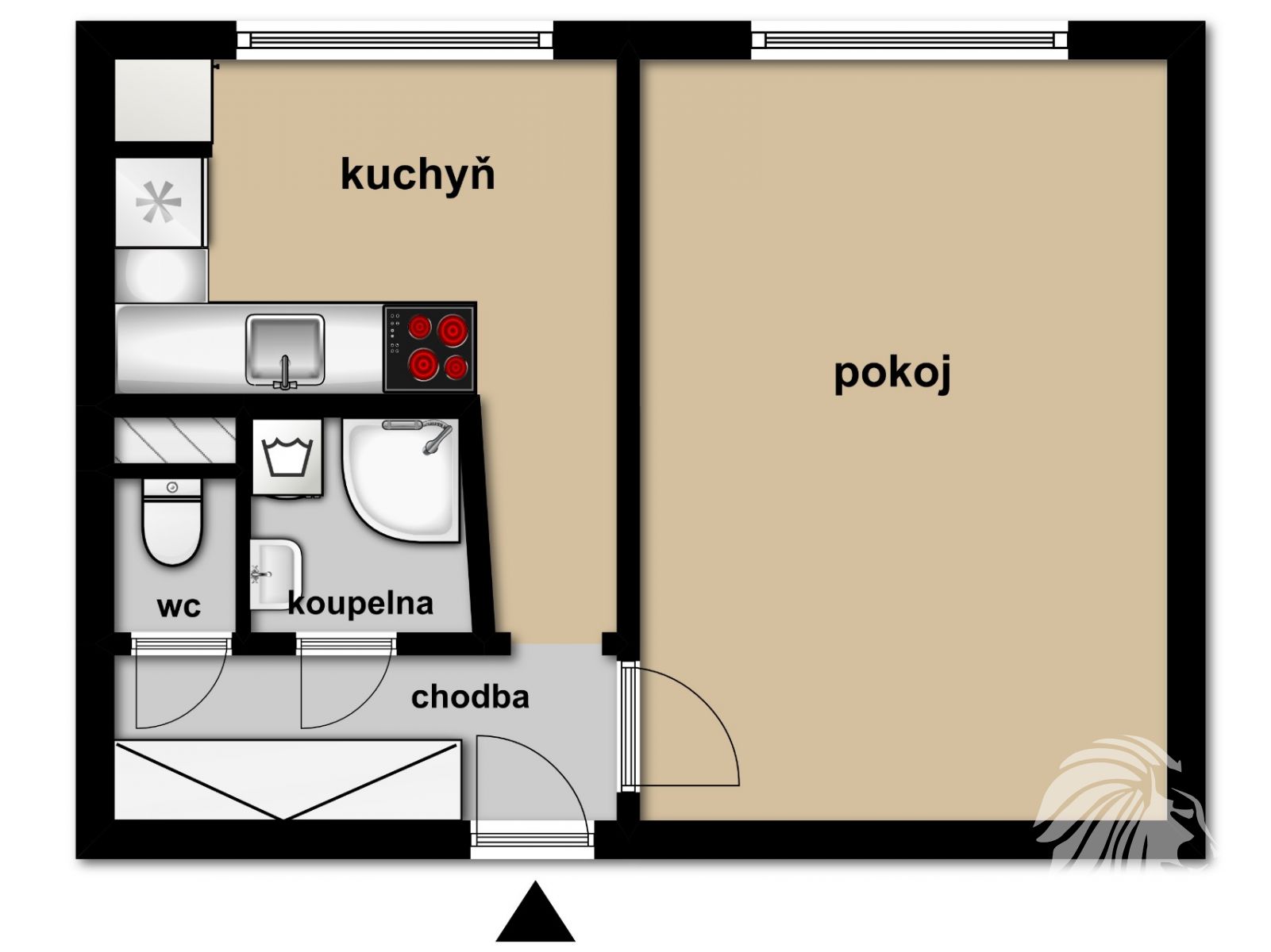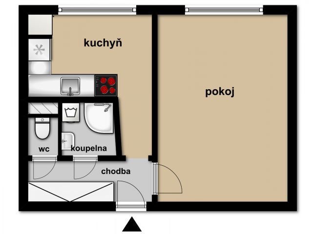 plastová okna ve výborném stavu. Rozvody elektřiny již v mědi. Byt je vhodný ke kompletní rekonstrukci. Členění bytu předsíň 4,75 m², WC 0,95 m², koupelna 2,11 m², pokoj 16,76 m², kuchyň se spíží 9,27 m². Sklepní kóje 1,10 m². Celkem 34,94 m². Úložné prostory se nabízejí na místě stávajících původních vestavěných skříní, v kuchyni ve spíži a ve sklepní kóji.