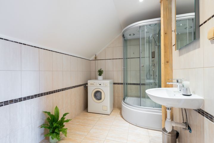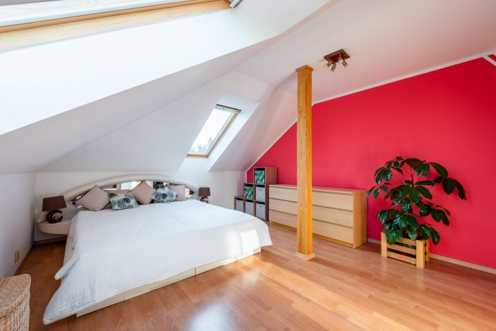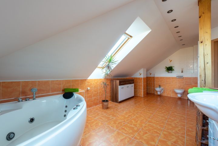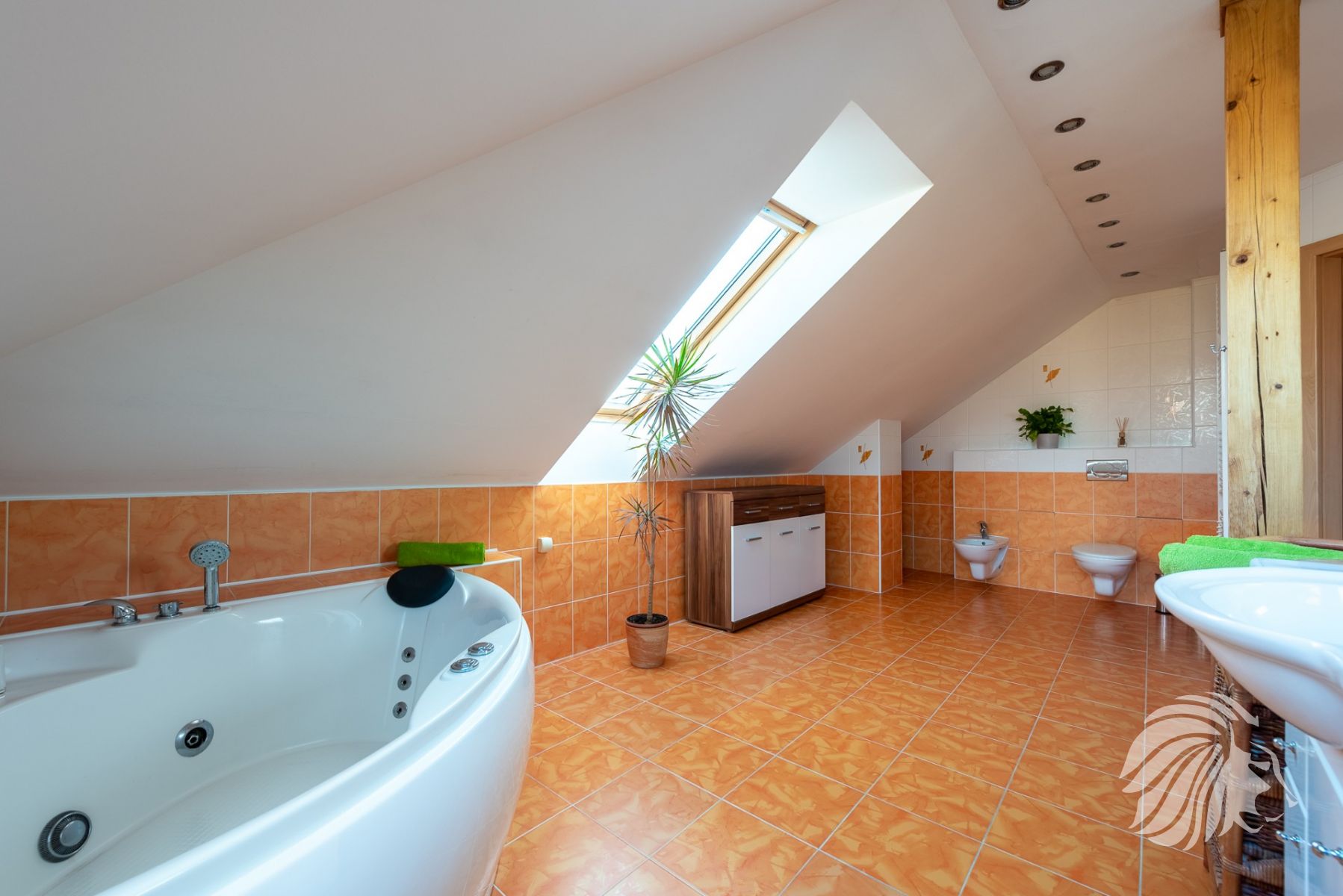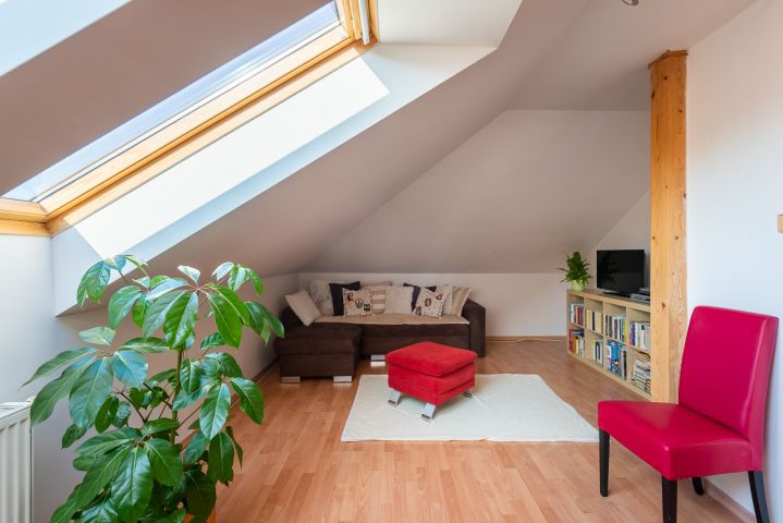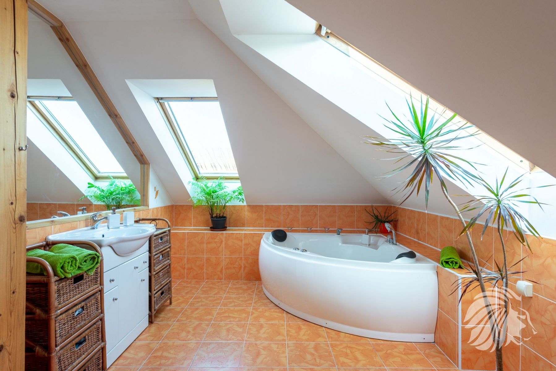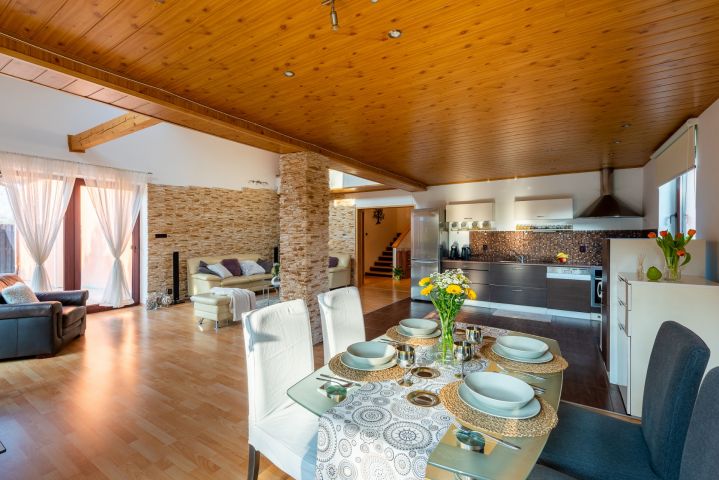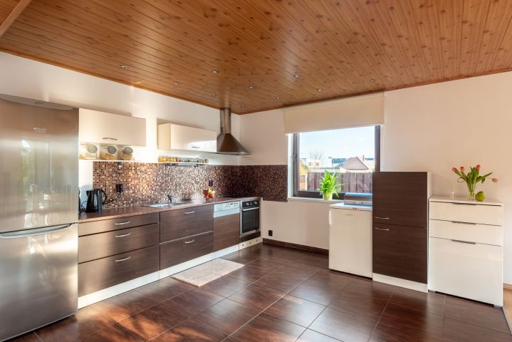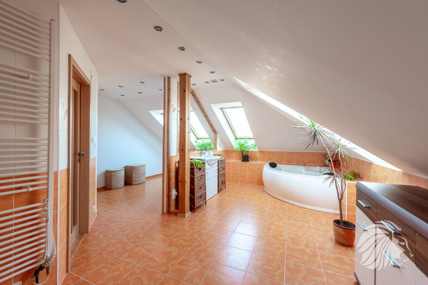 cca100 m², podkrovní s vlastním vstupem vznikl stavebním oddělením od prostor RD. Byt je možné pronajmout.