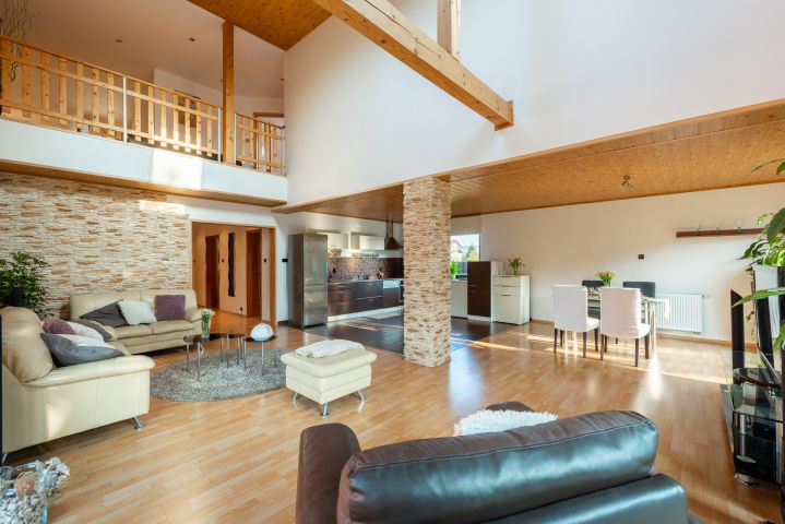 s podlahovým vytápěním, s galerií, prádelnou, šatnou. A podkrovní byt