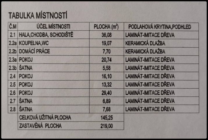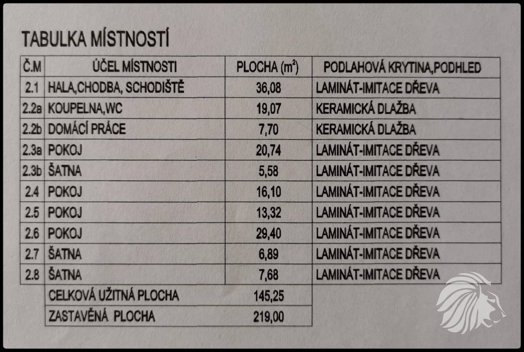 189,09 m², podkroví: 145,25 m²) a zahradou 470 m² tvoří pozemek