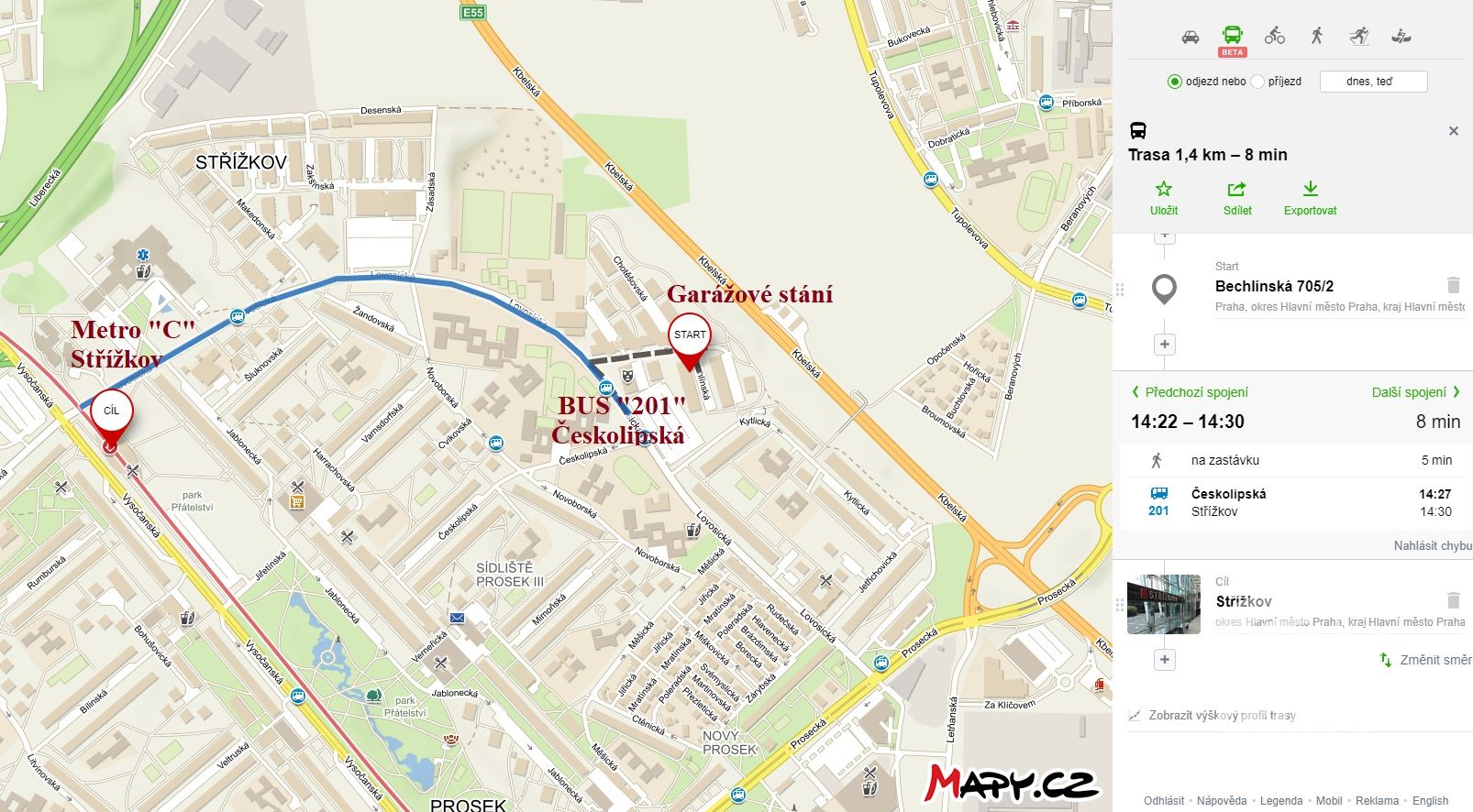 Zastávka BUS: Českolipská je v bezprostřední blízkosti od garáží.