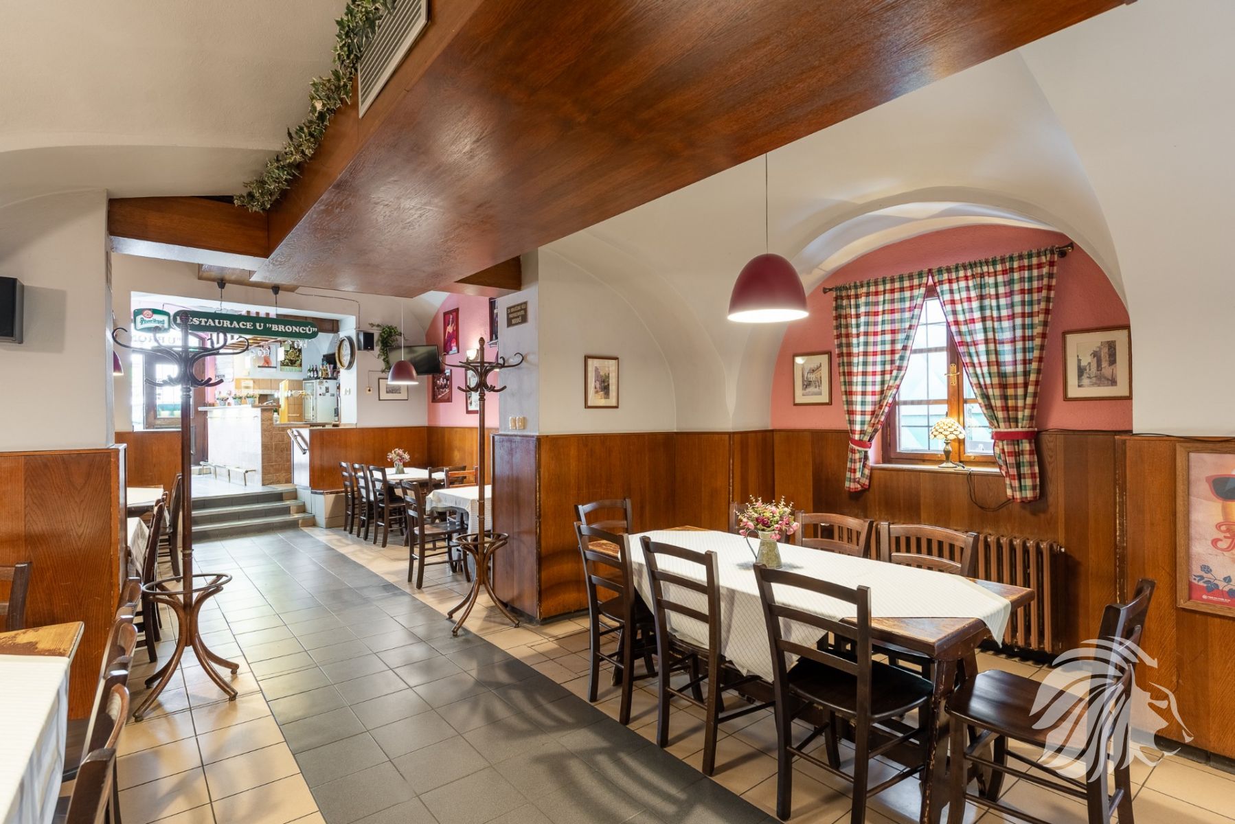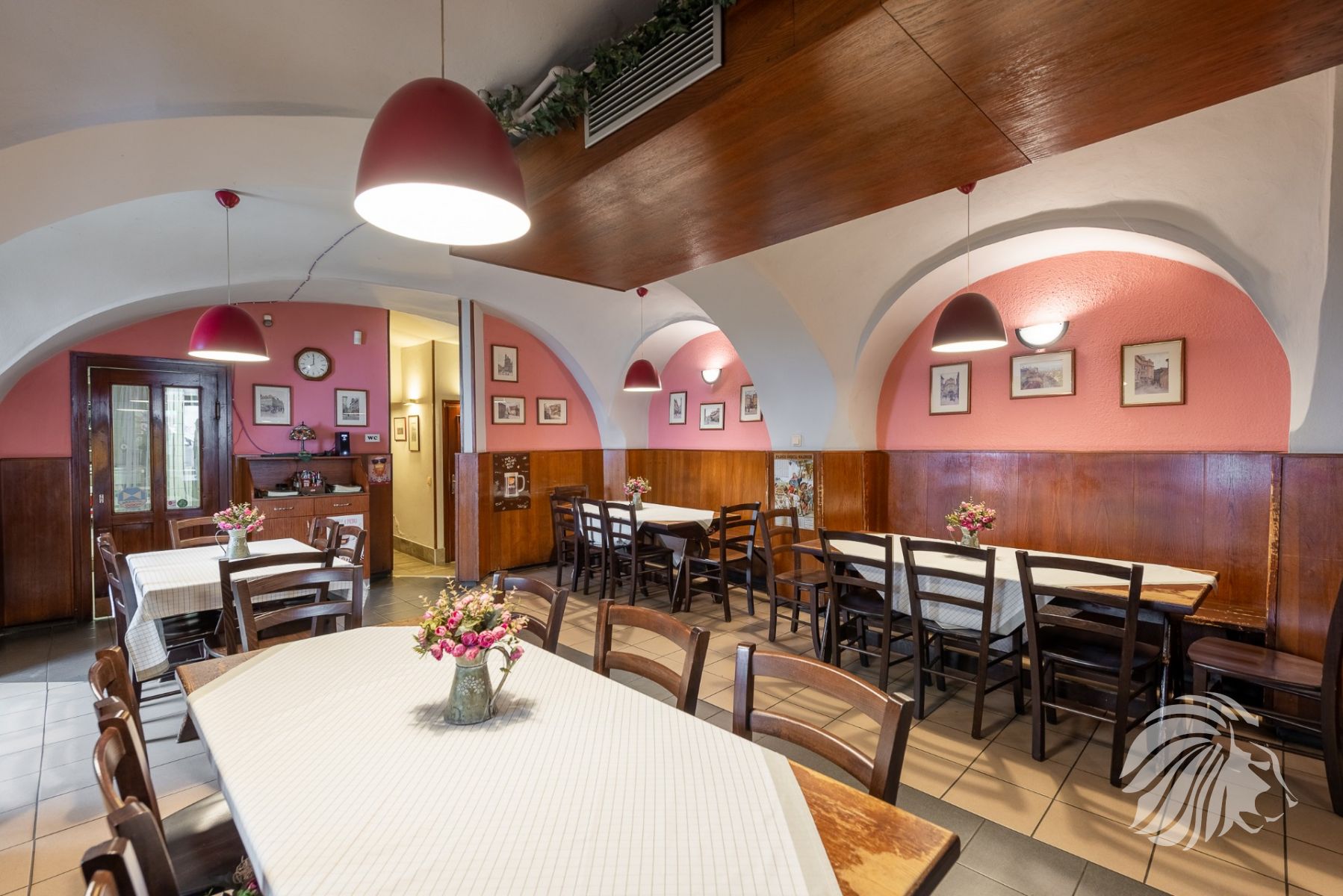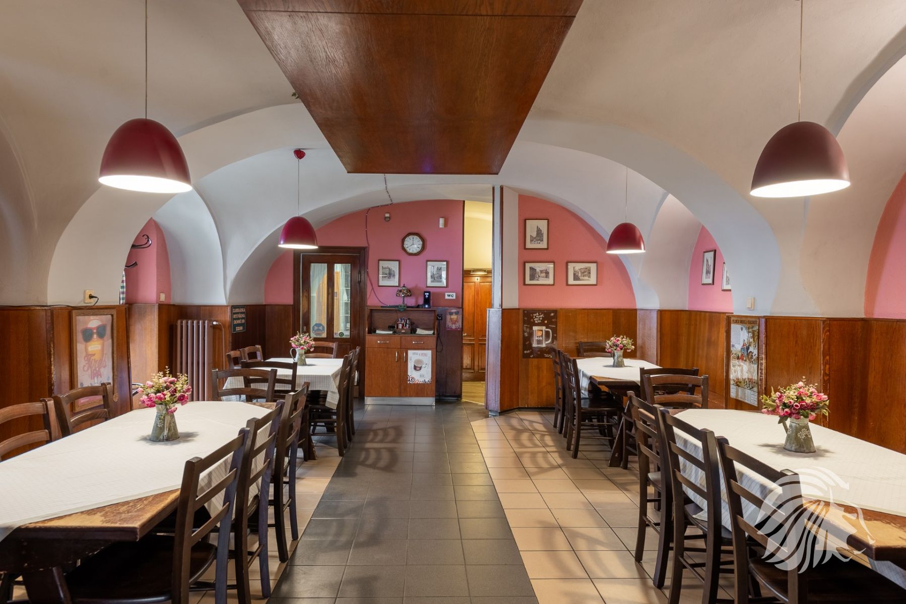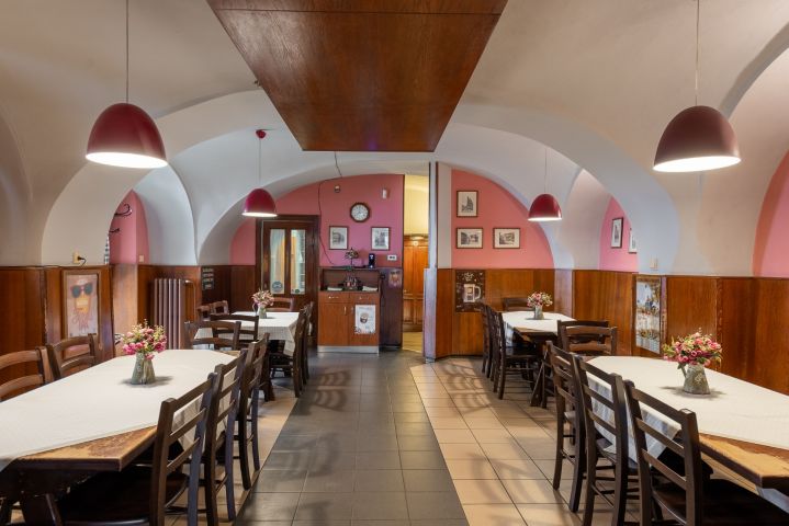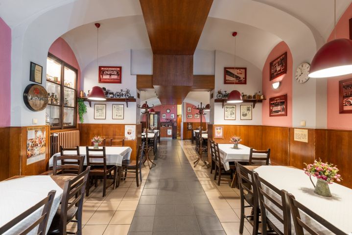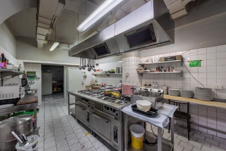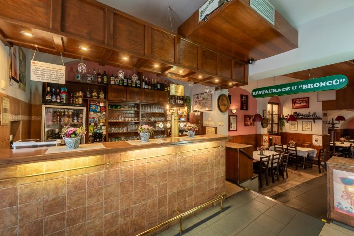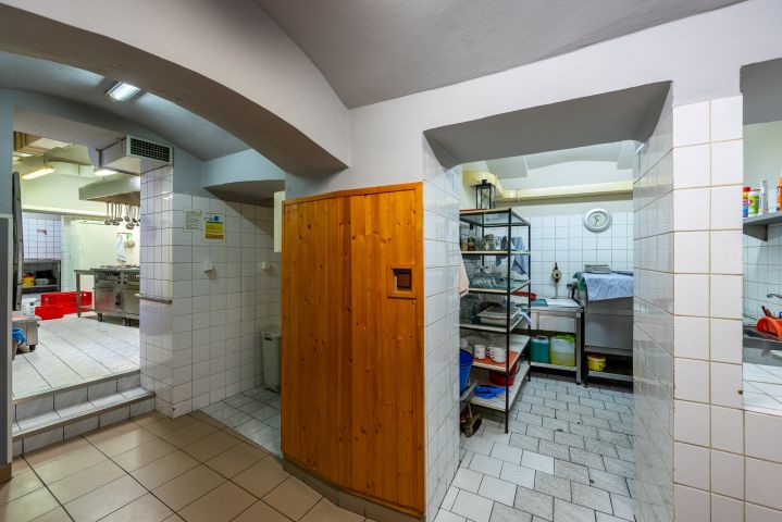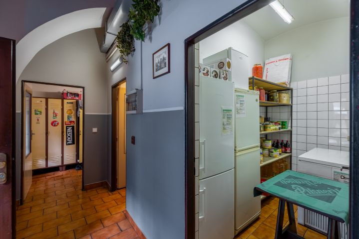 185 m² výčep, restaurace, kuchyň, zázemí, zahrádka, suchý sklad, koloniální sklad a další úložné prostory, kancelář, zázemí pro personál – šatna, sprchový kout a WC.