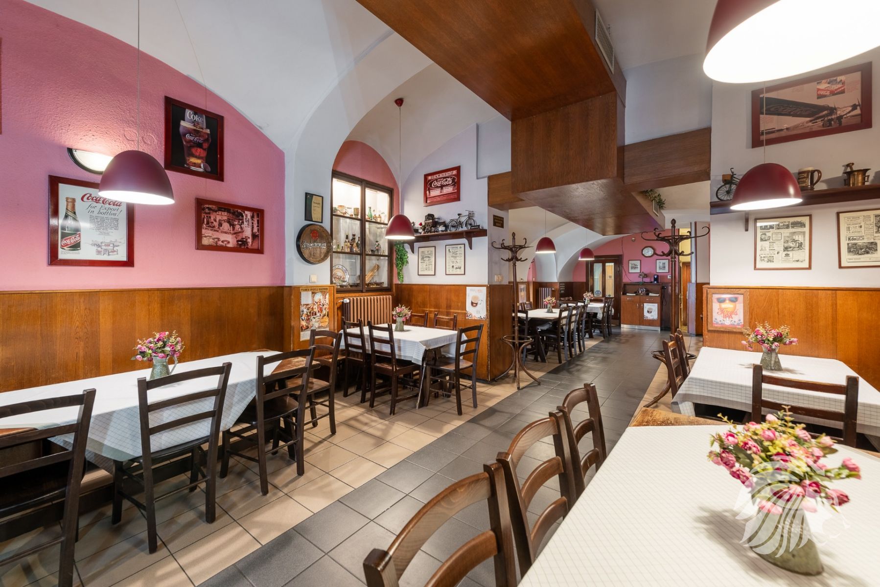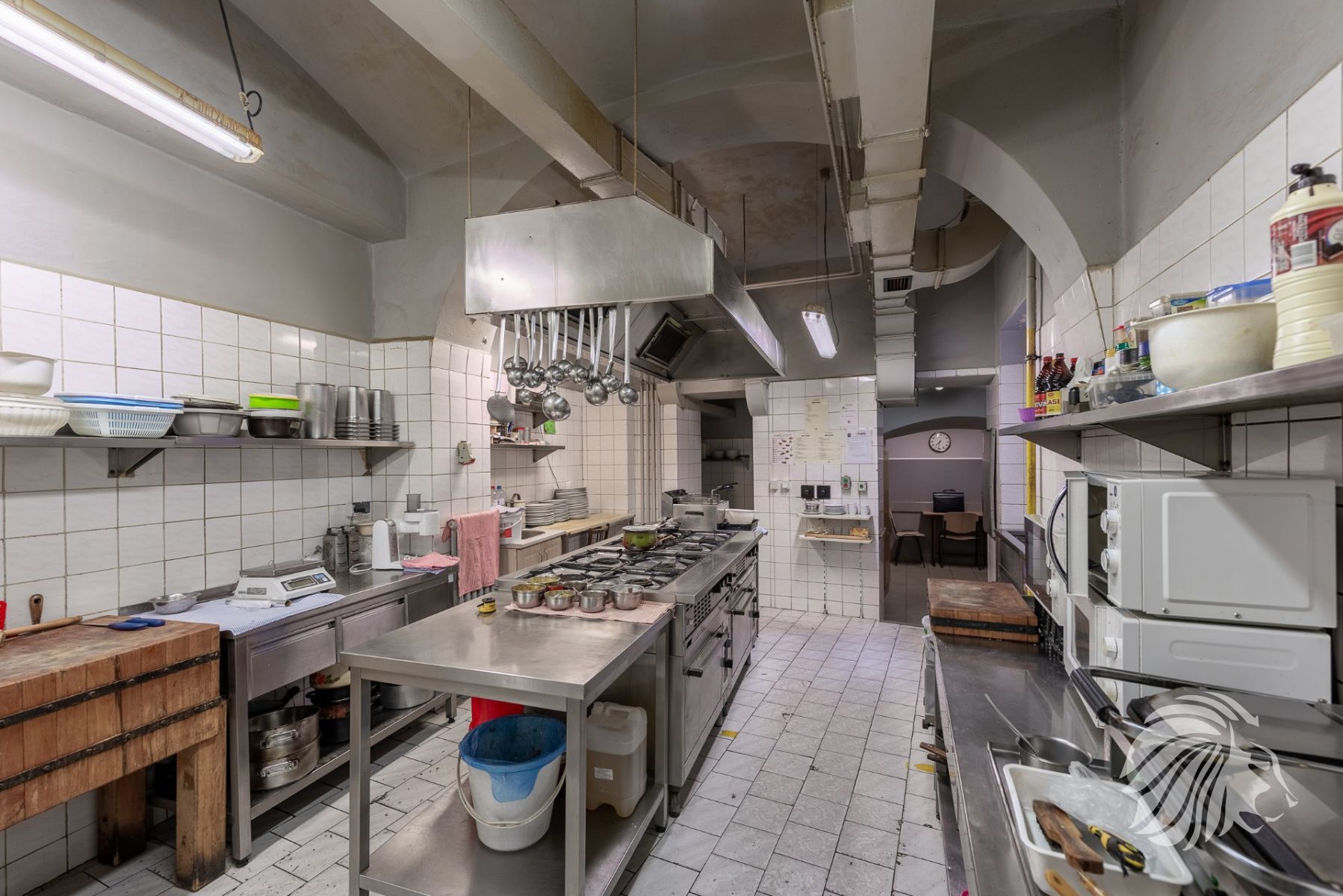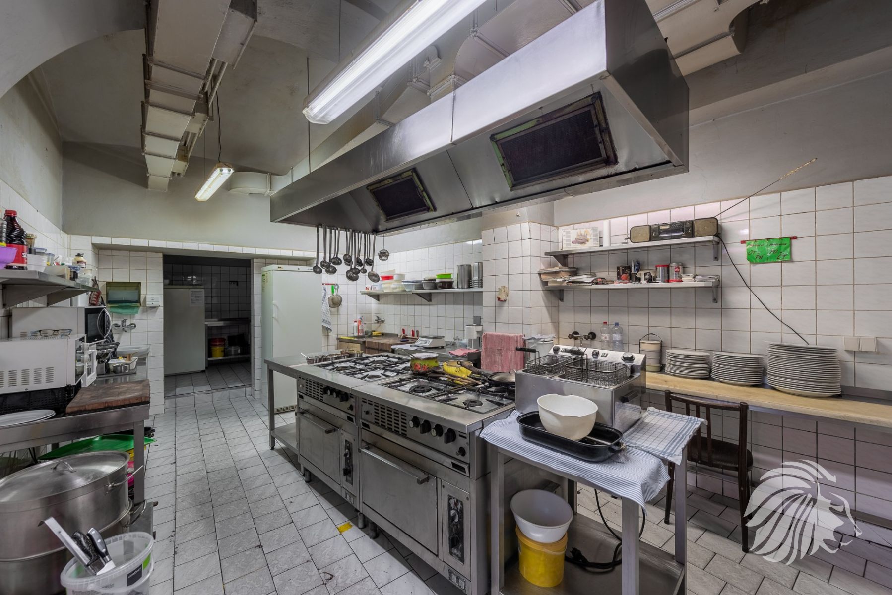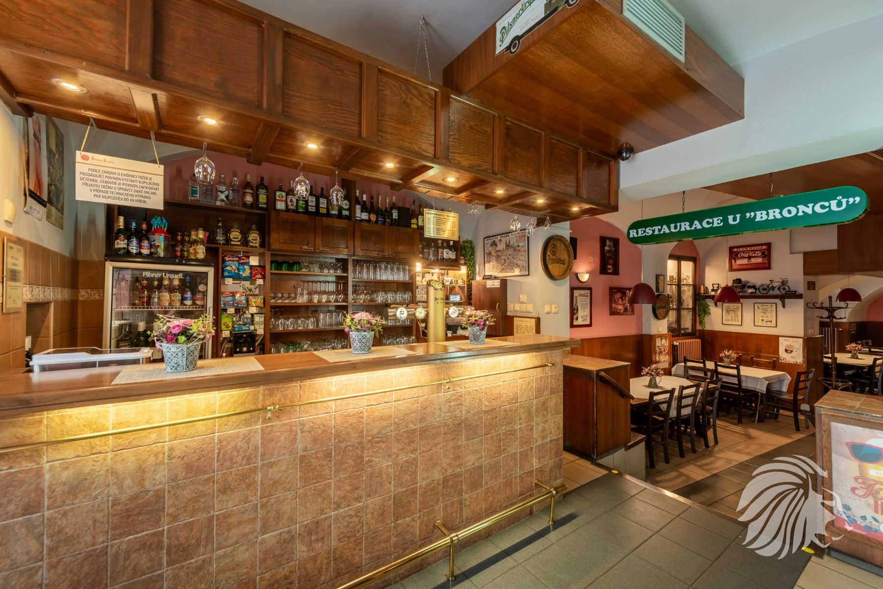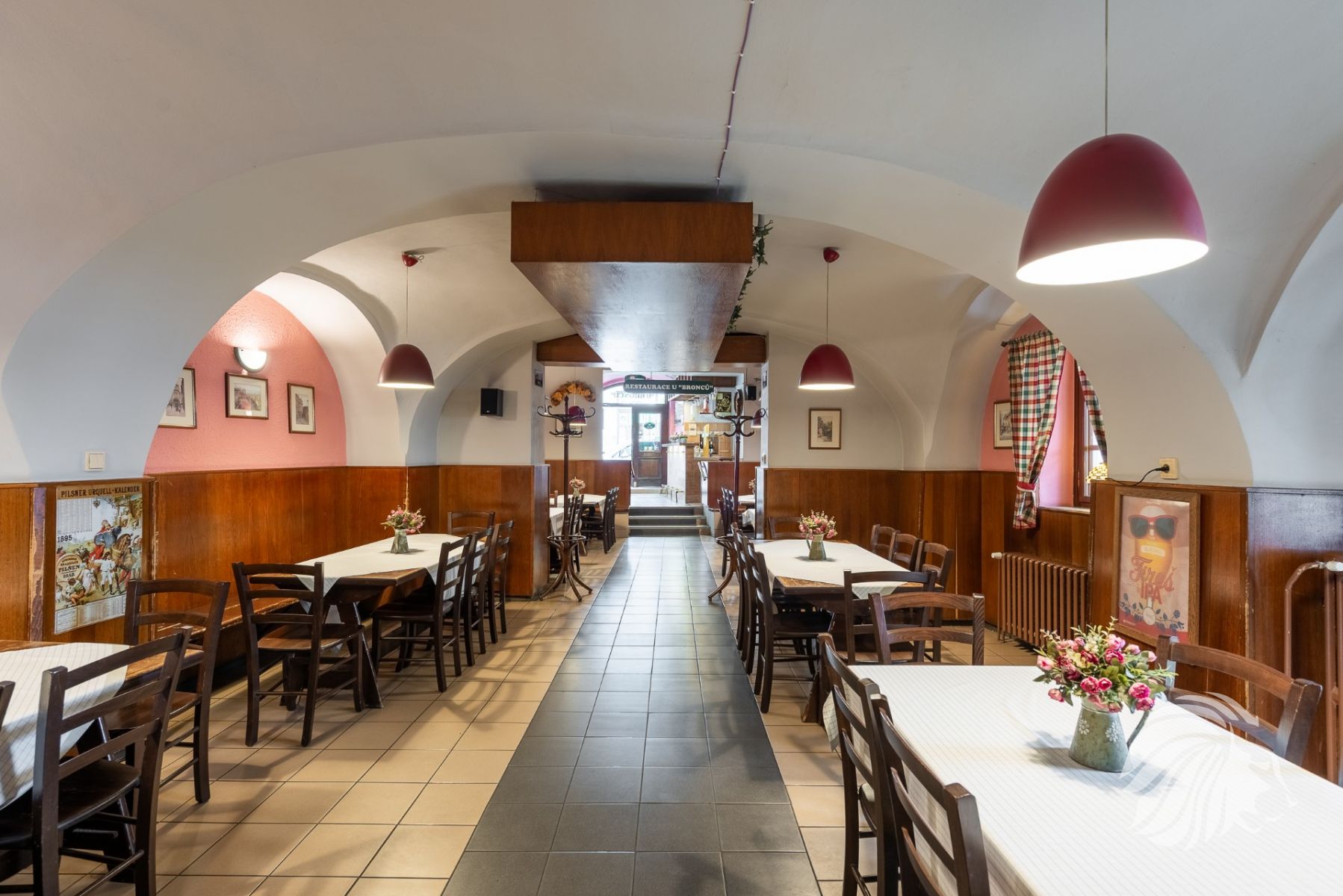 185 m² výčep, restaurace, kuchyň, zázemí, zahrádka, suchý sklad, koloniální sklad a další úložné prostory, kancelář, zázemí pro personál – šatna, sprchový kout a WC.