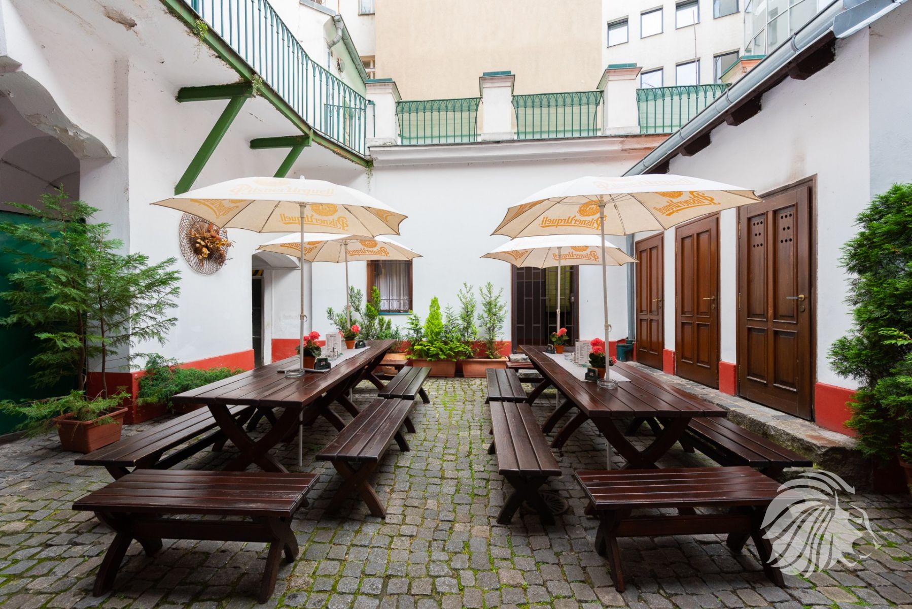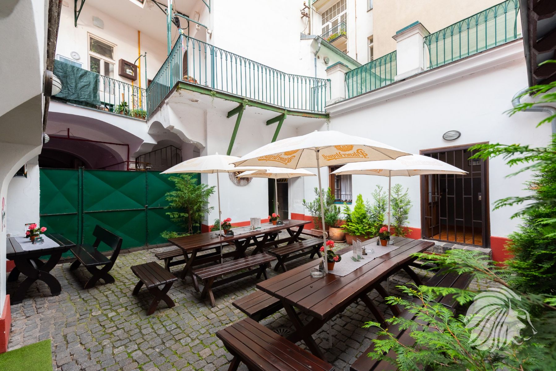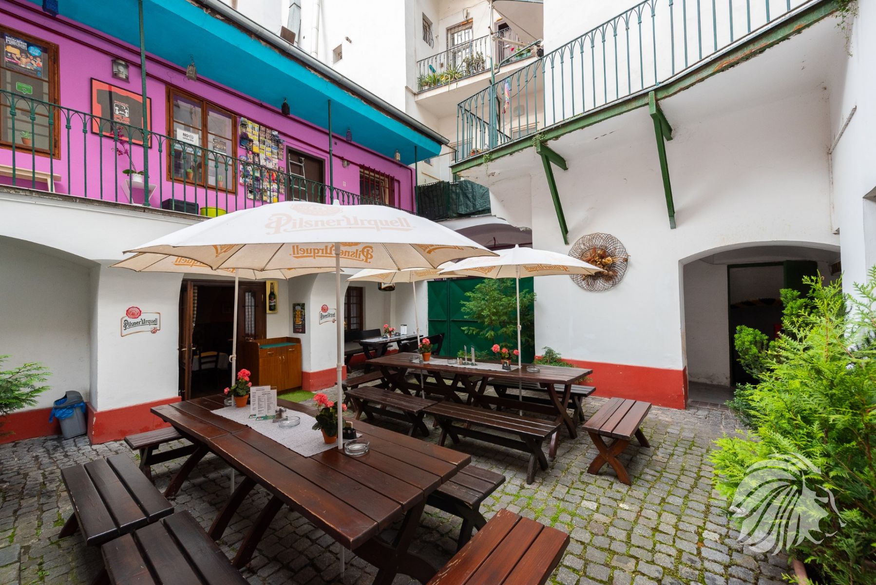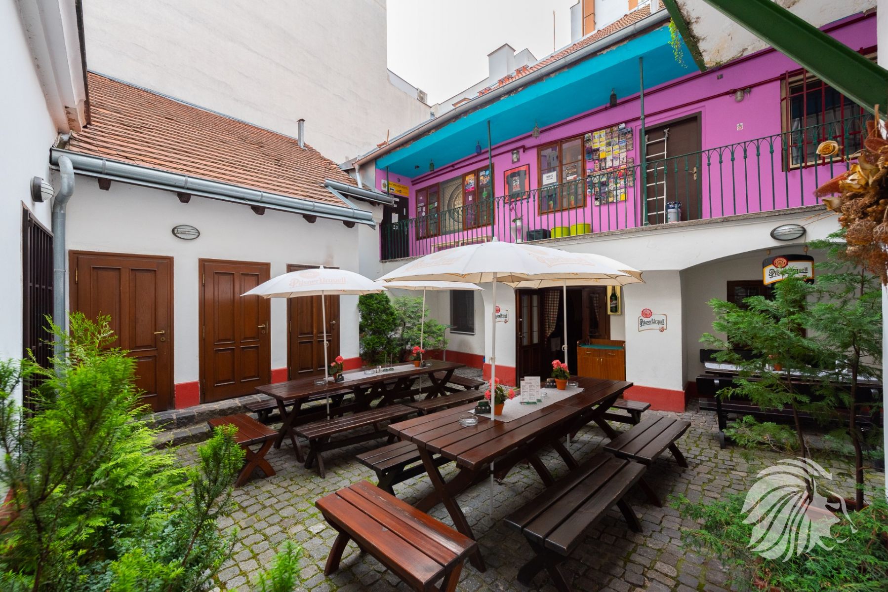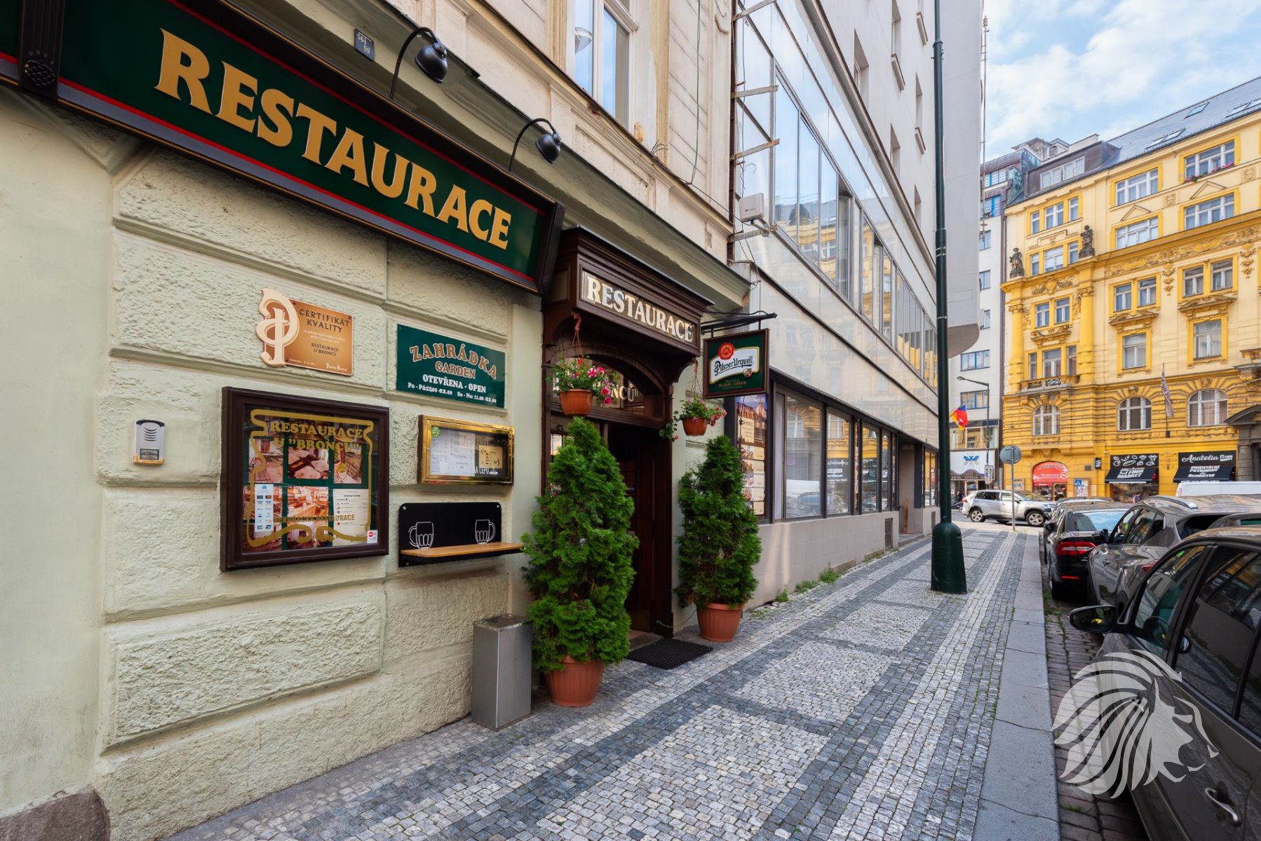 Možnost placeného prostoru před restaurací – toho času od města pronajaty 2 m² na okrasné túje v květináčích. Možnost využití místa také na reklamu tzv. „Áčko“.