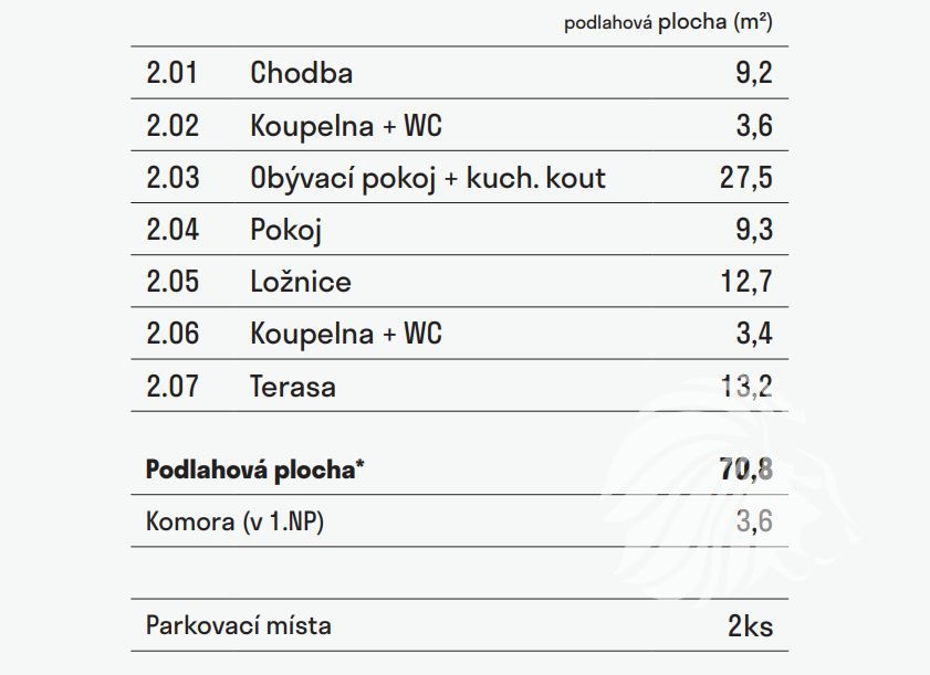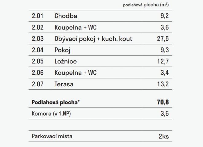 Ke všem jednotkám nabízíme 2 parkovací místa a sklepní kóji ZDARMA.