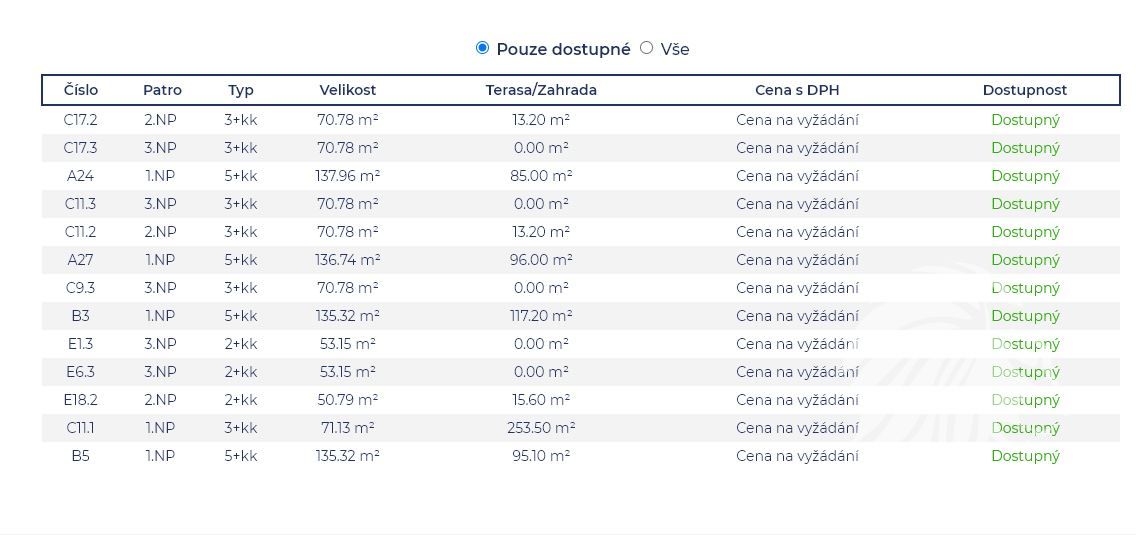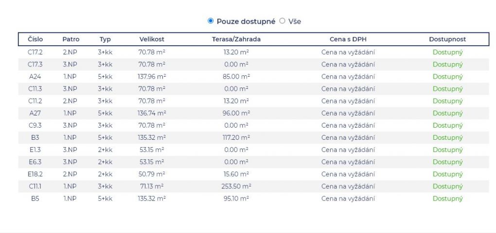 Ceny 2+kk od 4 100 000 Kč, 3+kk od 6 428 000 Kč, 5+kk od
