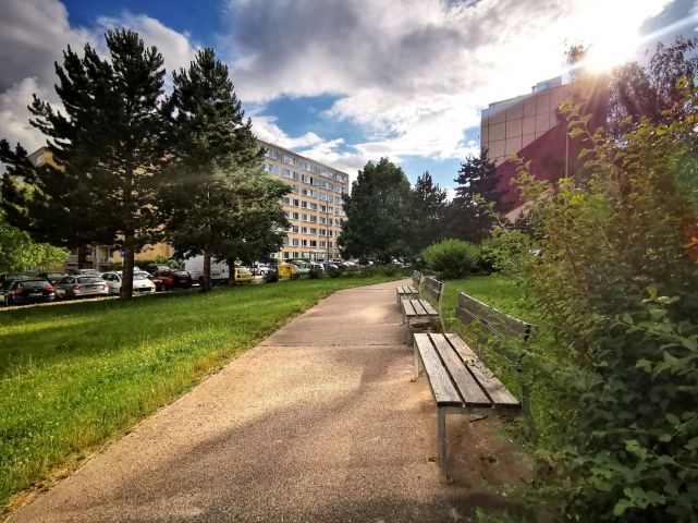 Jednotka je velmi světlá, má samostatné neprůchozí pokoje. Obě místnosti jsou orientovány na jih. Z každé místnosti je příjemný výhled do okolí domu se vzrostlou zelení, která nestíní. Místo je tiché, bez provozu aut.