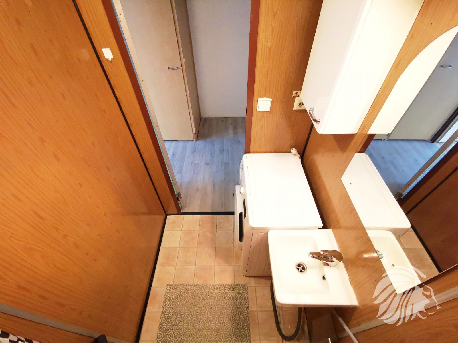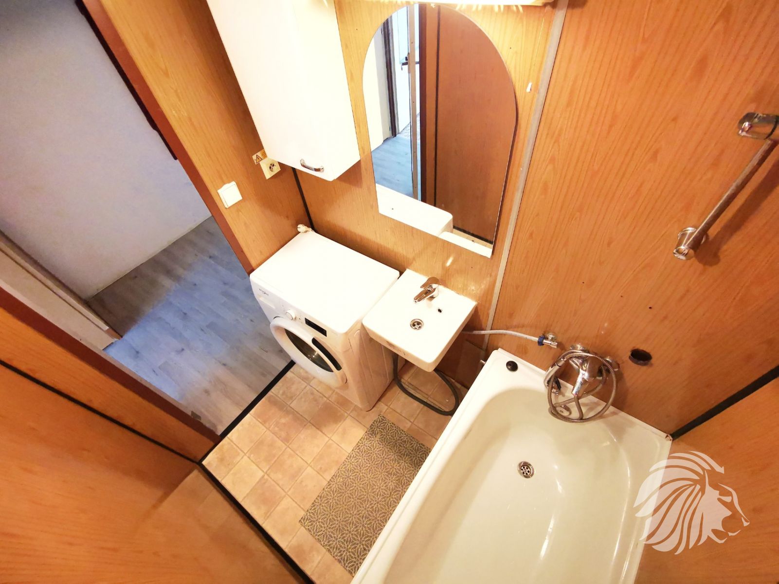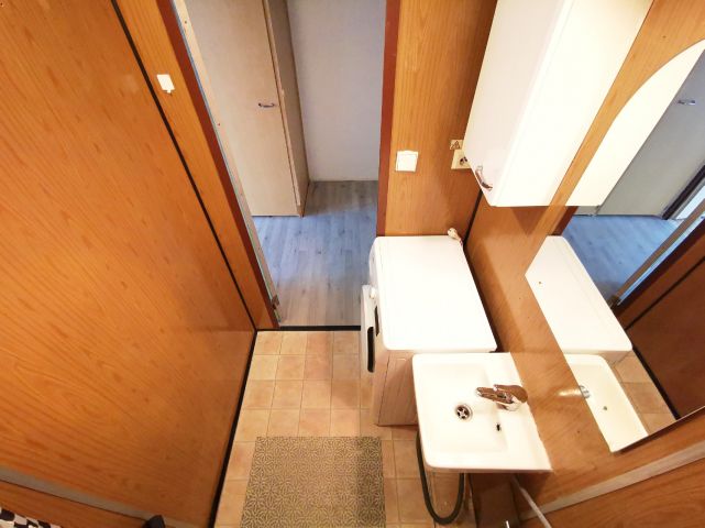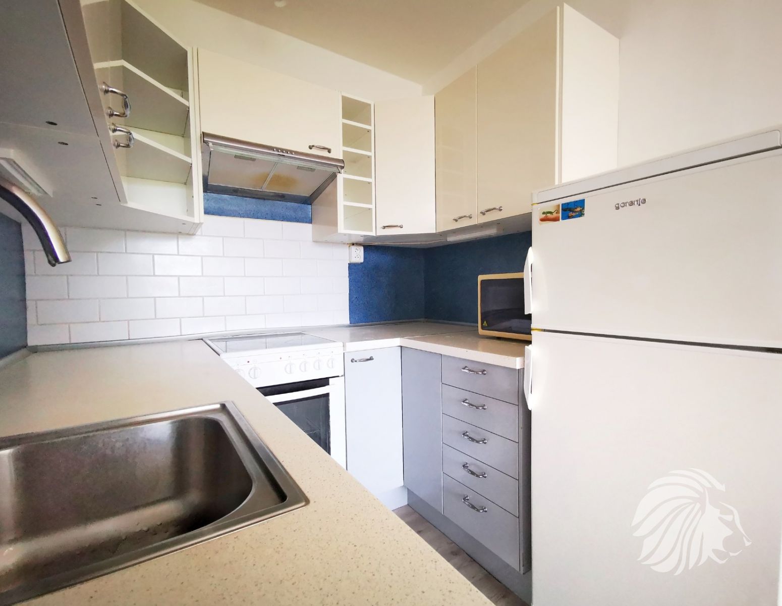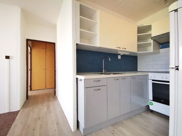 Kuchyňská linka je vybavena nerez dřezem, elektrickým sporákem s elektrickou troubou, digestoří, lednicí s mrazákem a mikrovlnnou troubou. PVC na podlaze v ložnici, toaletě a koupelně. V kuch koutu a na chodbě plovoucí podlaha. V obývacím pokoji položen koberec. V ložnici je připraven zcela nový zabalený koberec na pokládku ( druh a barva ve fotogalerii). V koupelně zůstává pračka Whirpool na 6 kg prádla se zárukou do 4/23. Úložné skříně na chodbě včetně nástěnného věšáku. Plastová okna s funkčními žaluziemi. Vytápění zajištěno dálkově. Nájemce může využít sklepní kóji.