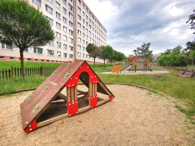 prvky a basketbalové multifunkční hřiště. ZŠ a dvě MŠ 5 minut pěšky