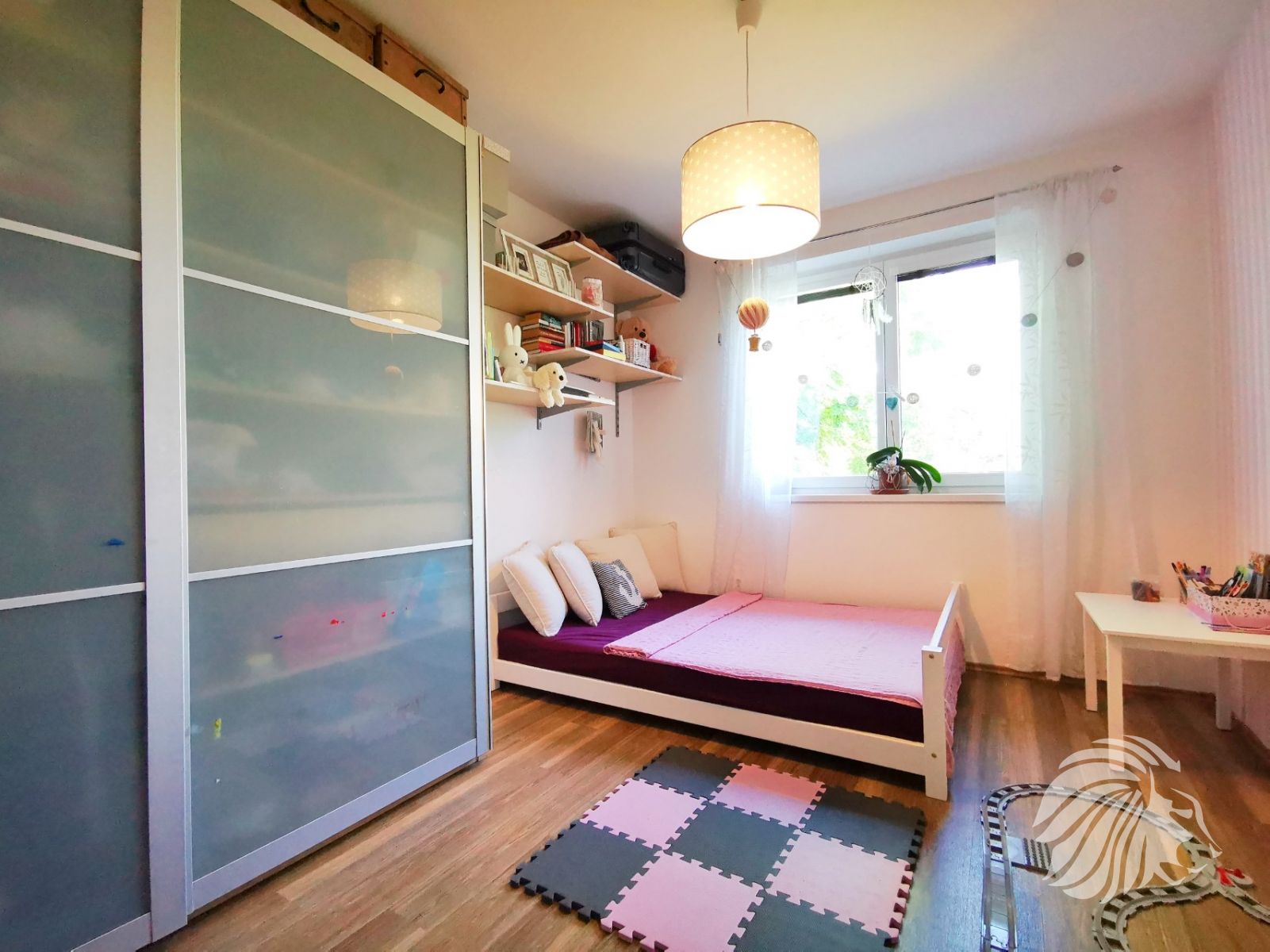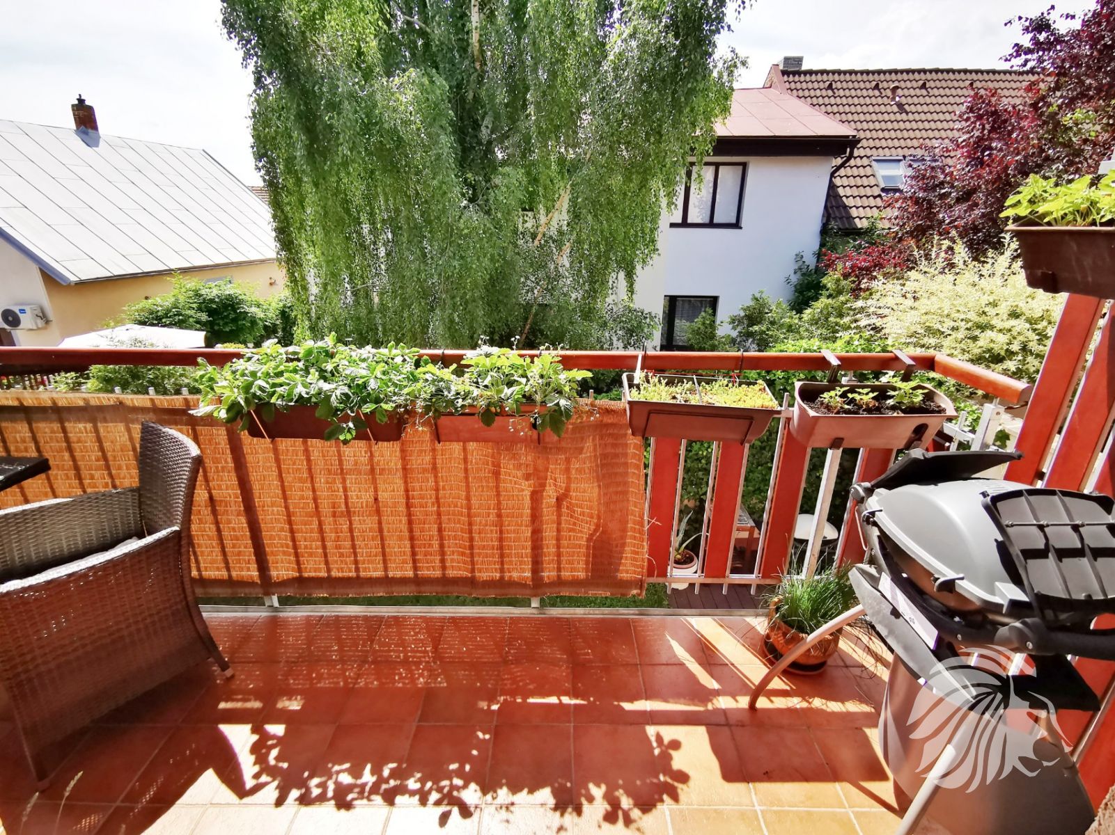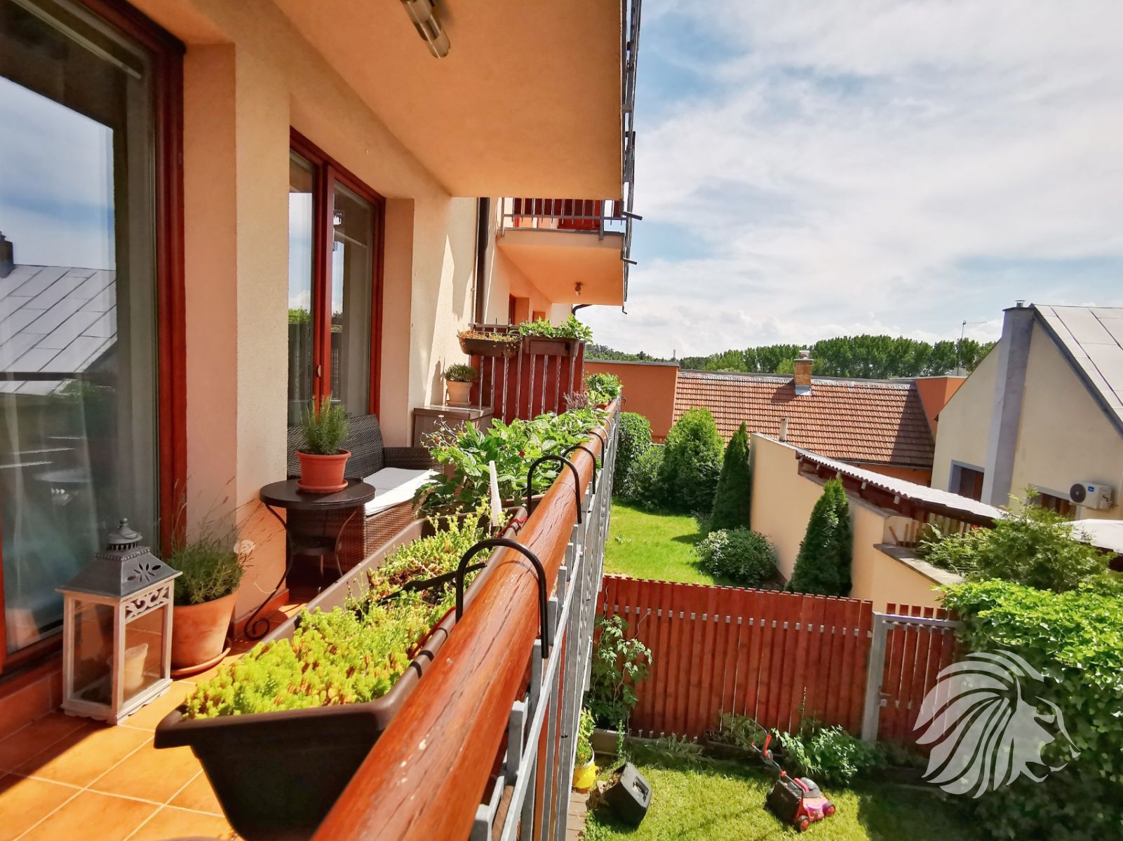 Obývací pokoj s balkónem je orientován na západ. Ložnice a dětský pokoj na východ. Z každé místnosti je příjemný výhled do bohaté zeleně. Z balkonu s dvoukřídlými dveřmi do obzvlášť příjemné bujné vegetace zahrádek u přízemních bytů i zahrad protějších domů. Místo je velmi tiché.