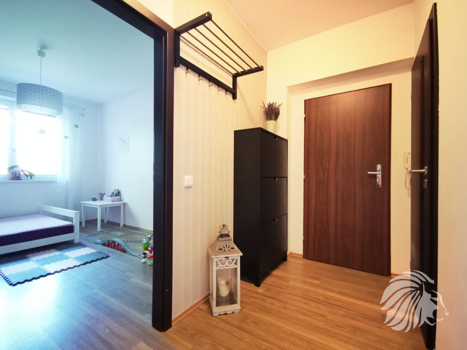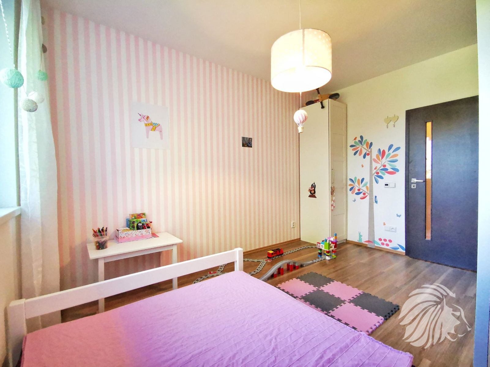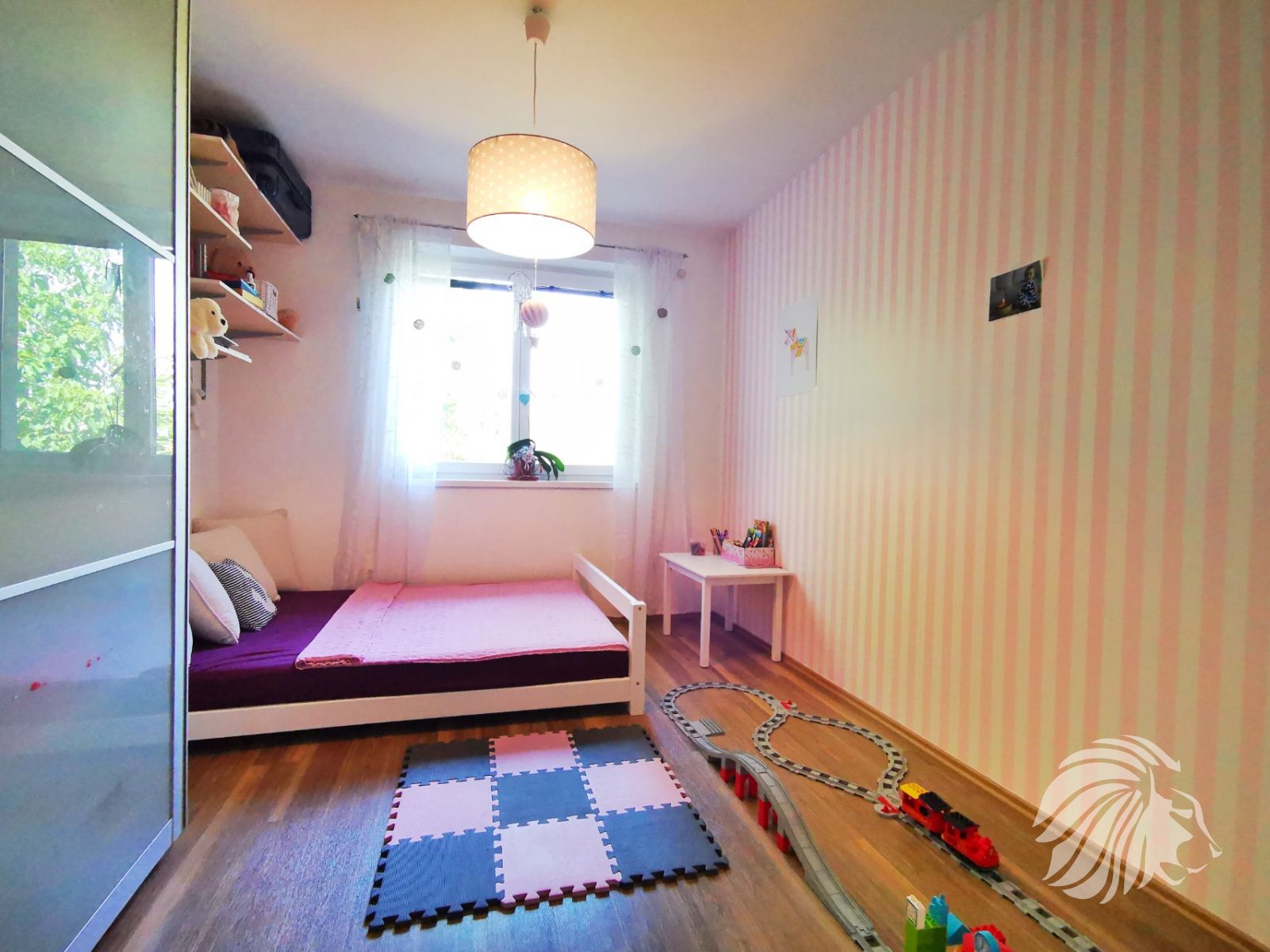 Obývací pokoj s balkónem je orientován na západ. Ložnice a dětský pokoj na východ. Z každé místnosti je příjemný výhled do bohaté zeleně. Z balkonu s dvoukřídlými dveřmi do obzvlášť příjemné bujné vegetace zahrádek u přízemních bytů i zahrad protějších domů. Místo je velmi tiché.