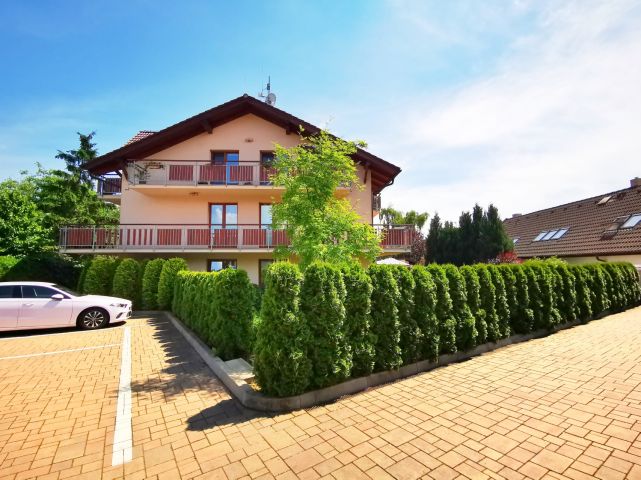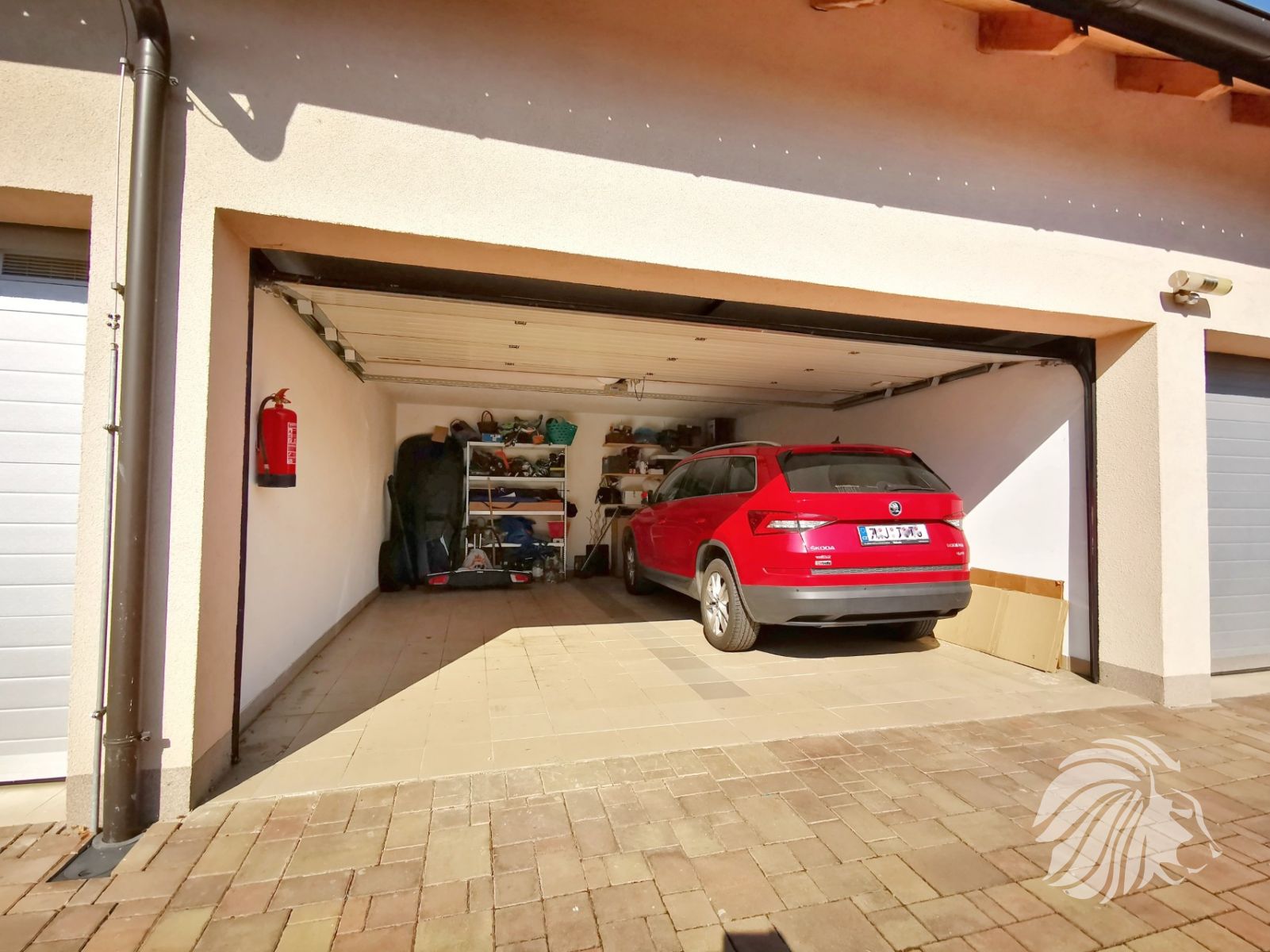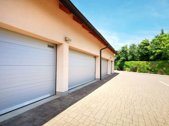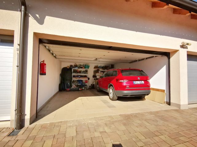 Za vraty garáže lze parkovat 2 auta (sdílená garáž), k bytu náleží