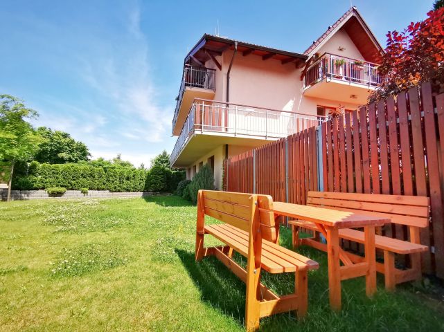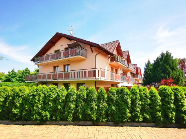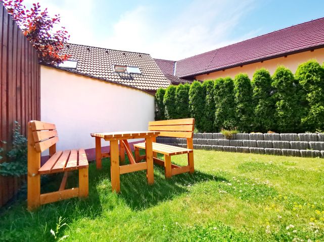 Uzavřený areál tvoří čtyř-dům v řadové zástavbě s bytovými jednotkami, dále zatravněný dvůr s posezením, který je možné využívat. Parkovací a manipulační zpevněná plocha, dvojgaráže v samostatné budově se sedlovou střechou, kolárna a úložné prostory-sklepy v 1.patře budovy vedle garážových stání. Celý prostor je chráněn zdmi, ploty a pojezdovou branou na dálkové ovládání.