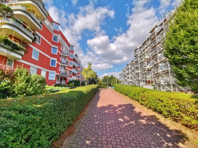 Oba pokoje vč. lodžie jsou orientovány na západ s výhledem do okolní zeleně a na dostatečně vzdálený protější dům. Místo je velmi tiché, bez pohybu aut.