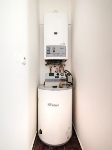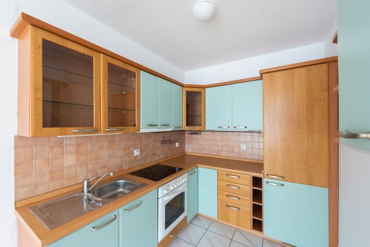 komfortní vytápění vlastním plynovým kotlem se zásobníkem na vodu umístěným šikovně v prostorách zádveří. Dřevěná plovoucí dubová podlaha a dlažba, vnitřní žaluzie, v rohovém okně v obýváku i venkovní elektrické. STA, rozvody Vodafone (exUPC) plastová okna, termostat na vlastní plynové topení. Praktické umyvadlo na WC. Čerstvě vymalováno na bílo, byt je čistý, uklizený, perfektně připravený pro nového nájemníka.