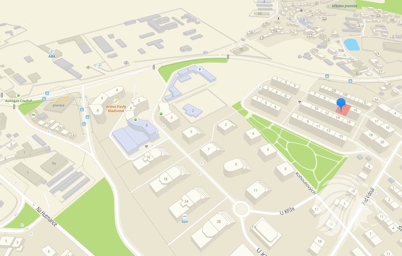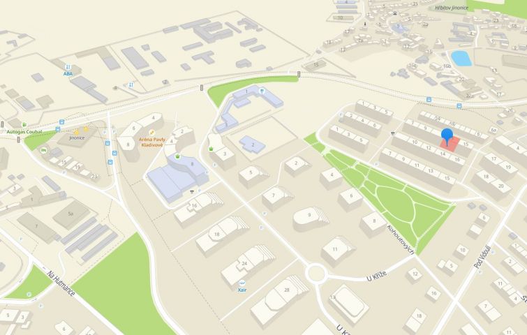 Dům je vzdálen od metra pouhých 6 minut chůze, je zasazen v řídké zástavbě rozmanitého terénu Jinonic mezi vilovou čtvrtí, spoustou zeleně a sportovišti. Nedaleko najdete i výběh koně Převalského.