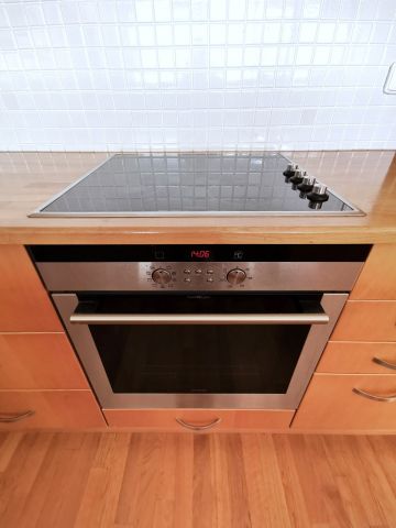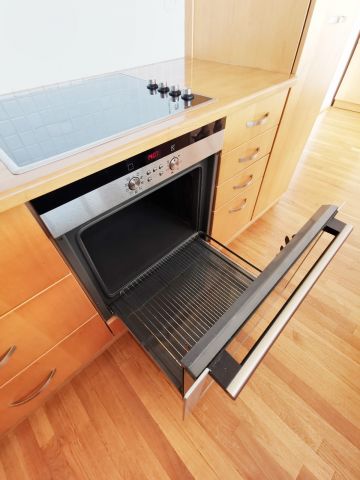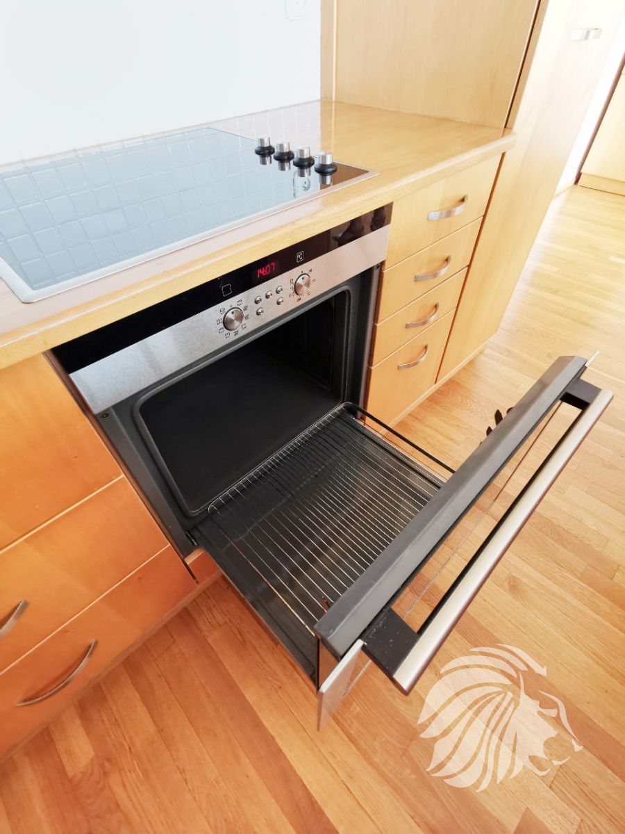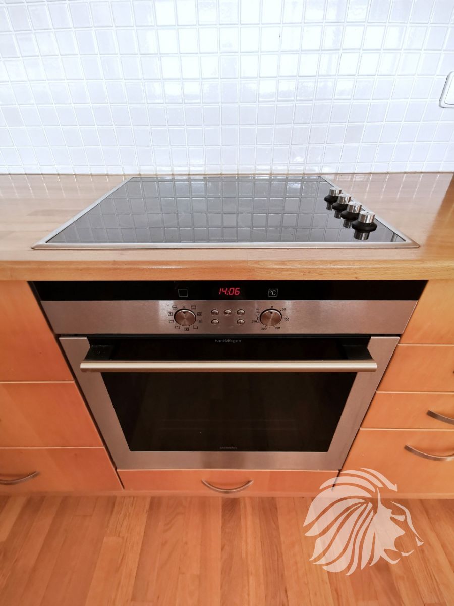 sklokeramická varná deska Siemens, digestoř s vložkou, dřevěná pracovní