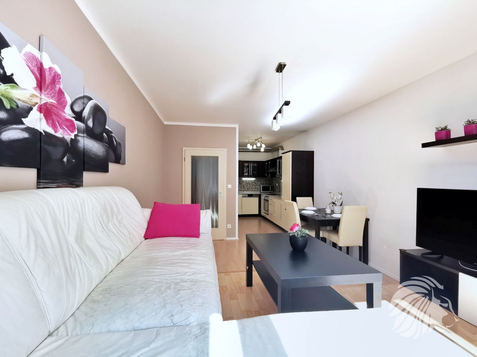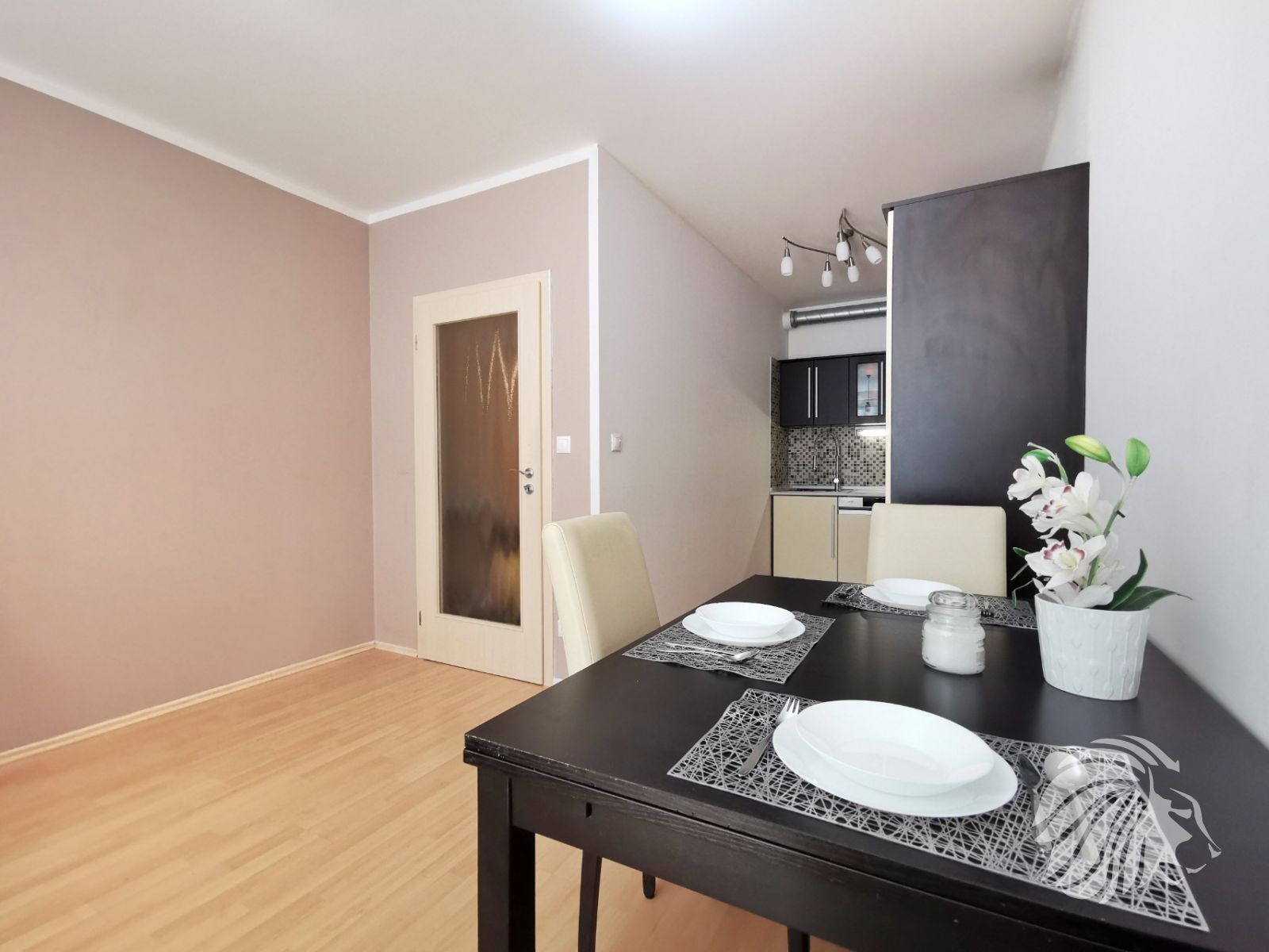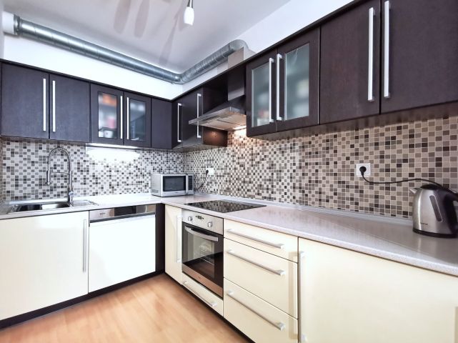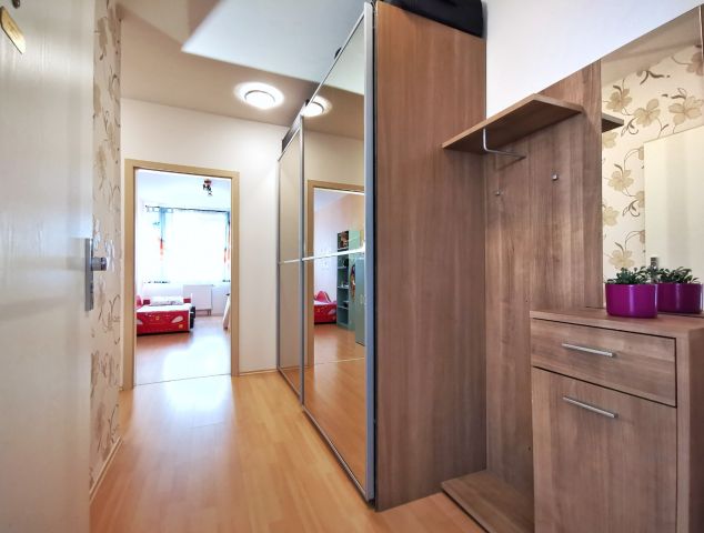 Byt je nabízen vybavený nábytkem – viz foto. Dle dohody lze některé kusy odvézt (např. sedačku). Kuchyňská linka s kompletními vestavěnými spotřebiči-horkovzdušná trouba, varná deska, lednice s mrazákem, myčka, digestoř, mikrovlnná trouba. Rozkládací jídelní stůl až pro 6 osob. Pračka 8 kg se sušičkou 6 kg v jednom, prostorná vestavěná skříň se zrcadly na chodbě, koupelna s vanou a otopným žebříkem, atd.
