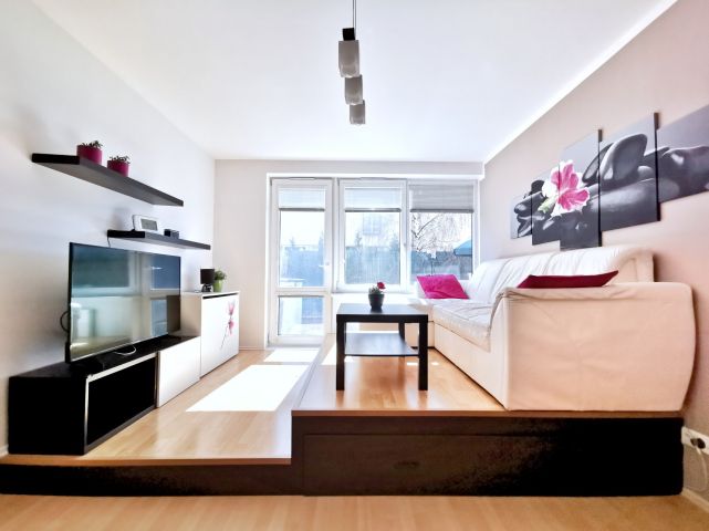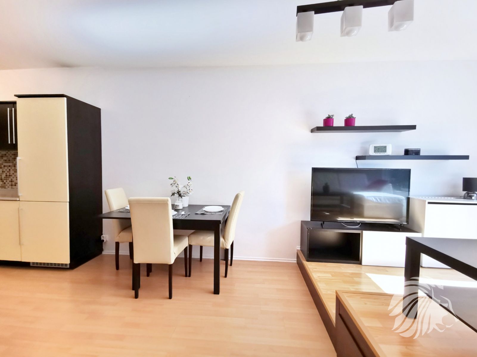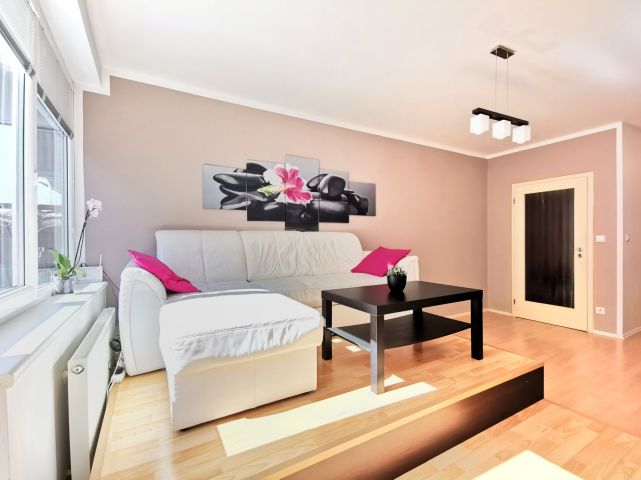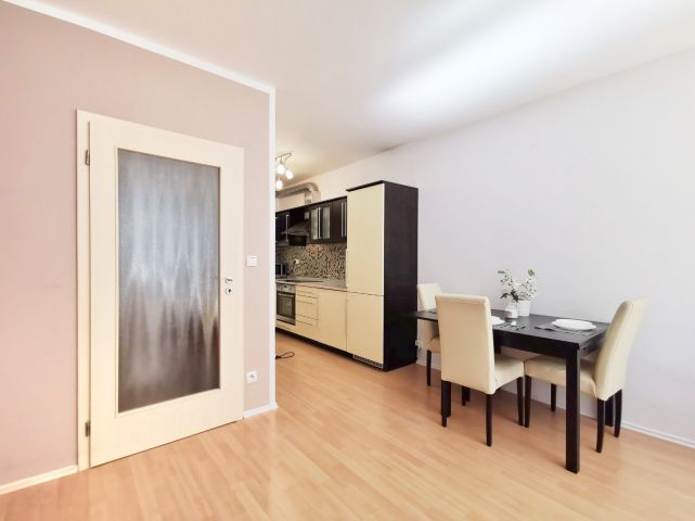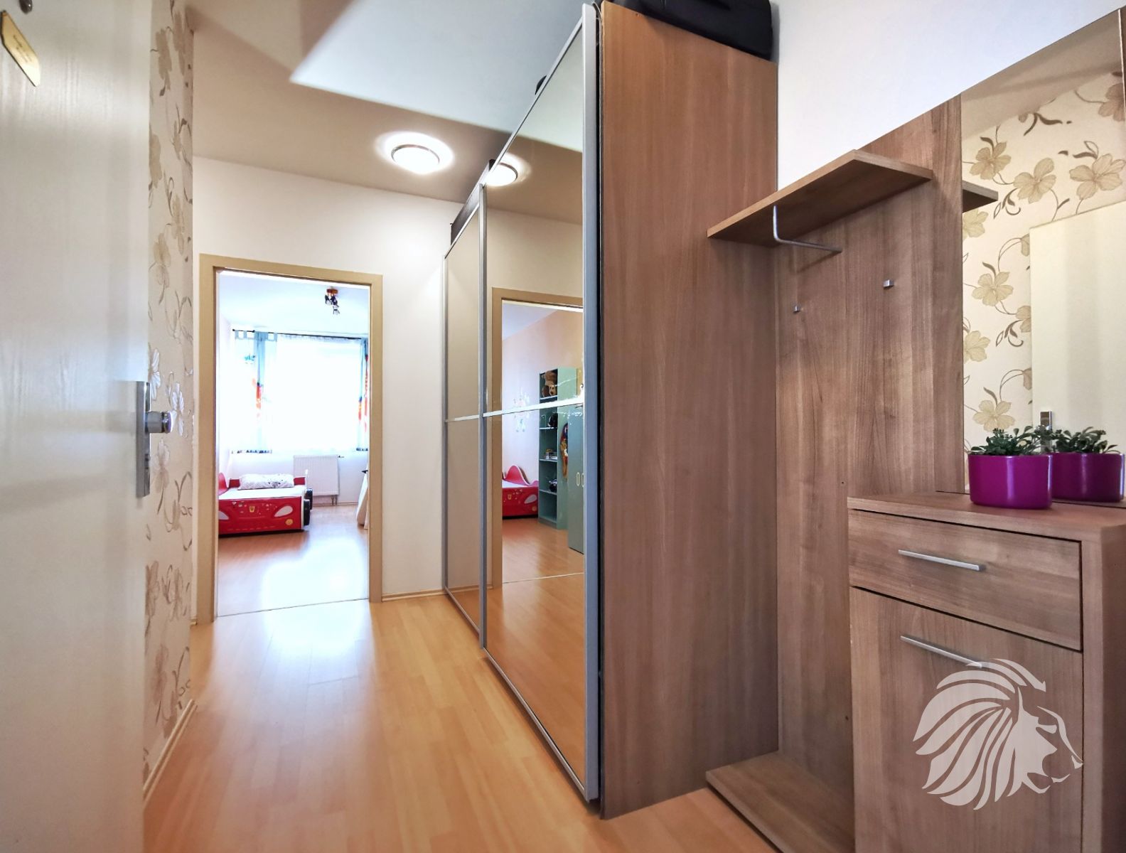 Byt je nabízen vybavený nábytkem – viz foto. Dle dohody lze některé kusy odvézt (např. sedačku). Kuchyňská linka s kompletními vestavěnými spotřebiči-horkovzdušná trouba, varná deska, lednice s mrazákem, myčka, digestoř, mikrovlnná trouba. Rozkládací jídelní stůl až pro 6 osob. Pračka 8 kg se sušičkou 6 kg v jednom, prostorná vestavěná skříň se zrcadly na chodbě, koupelna s vanou a otopným žebříkem, atd.