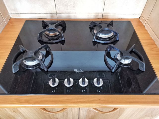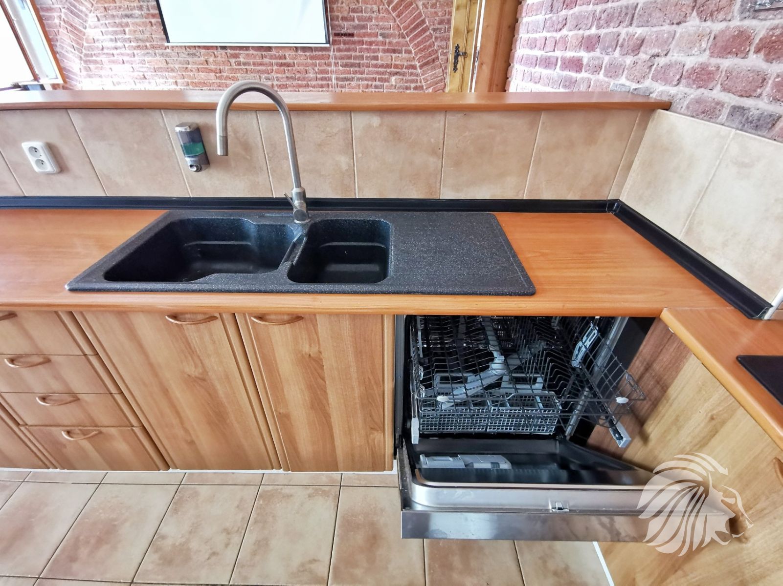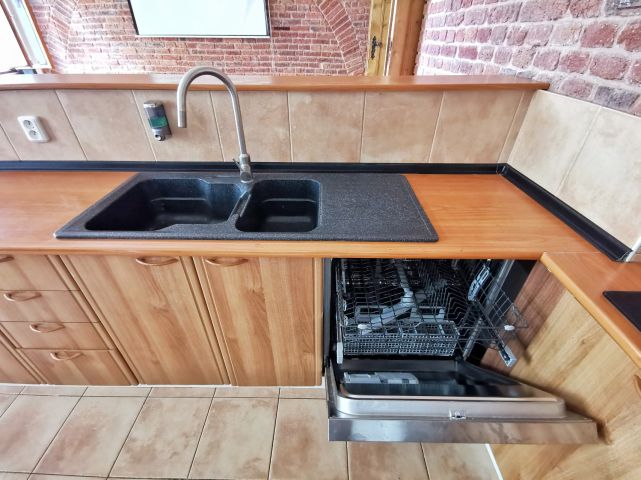 vybavena myčkou, digestoří s odtahem do komína, plynovým sporákem a