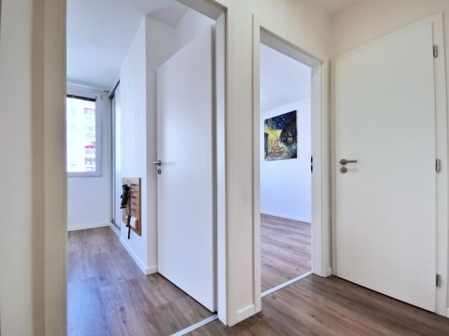 Dva velmi světlé a téměř identické zrcadlové pokoje jsou orientovány na sever, ložnice a obývací pokoj s lodžií na jih. Místo je velmi klidné, s pohybem aut jen těch místních.