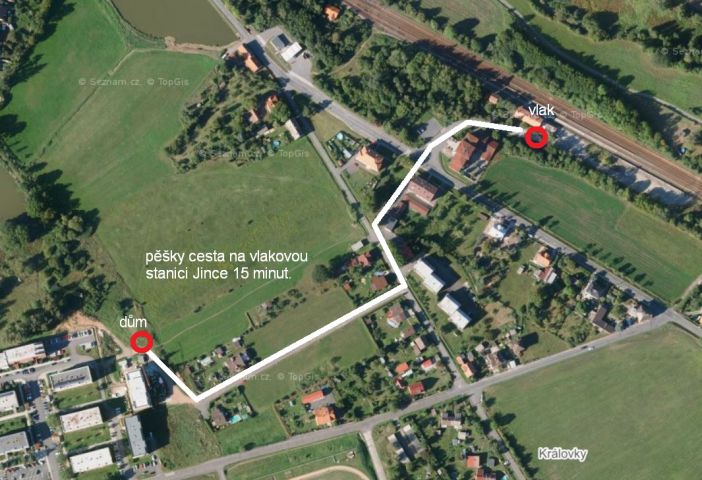 Autobusová zastávka vzdálena cca 5 min. chůze, vlaková cca 15 min.