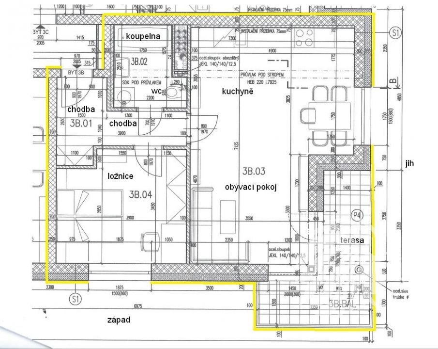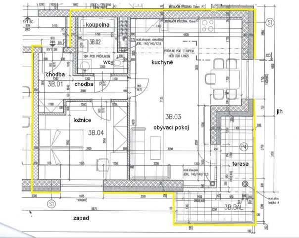 Byt je orientován na dvě světové strany (J,Z). Prostorná místnost pro obývací pokoj s kuchyňským koutem (30.46 m²) je hojně prosvětlena denním světlem z okna v jídelní části a proskleným vstupem na balkonovou terasu v obývací části. Výhled je do zeleně a okolní zástavby. V chodbě je praktický výklenek na vestavěnou skříň s klasickou hloubkou 60 cm. Místnosti jsou neprůchozí a samostatné. Velkoryse řešená koupelna je spojená s toaletou. Obývací pokoj je orientován na jih a západ, kde se dá např. stropní průvlak využít jako designový prvek a velkou místnost tak opticky rozdělit na jídelní a obývací část. Ložnice orientovaná na západ.