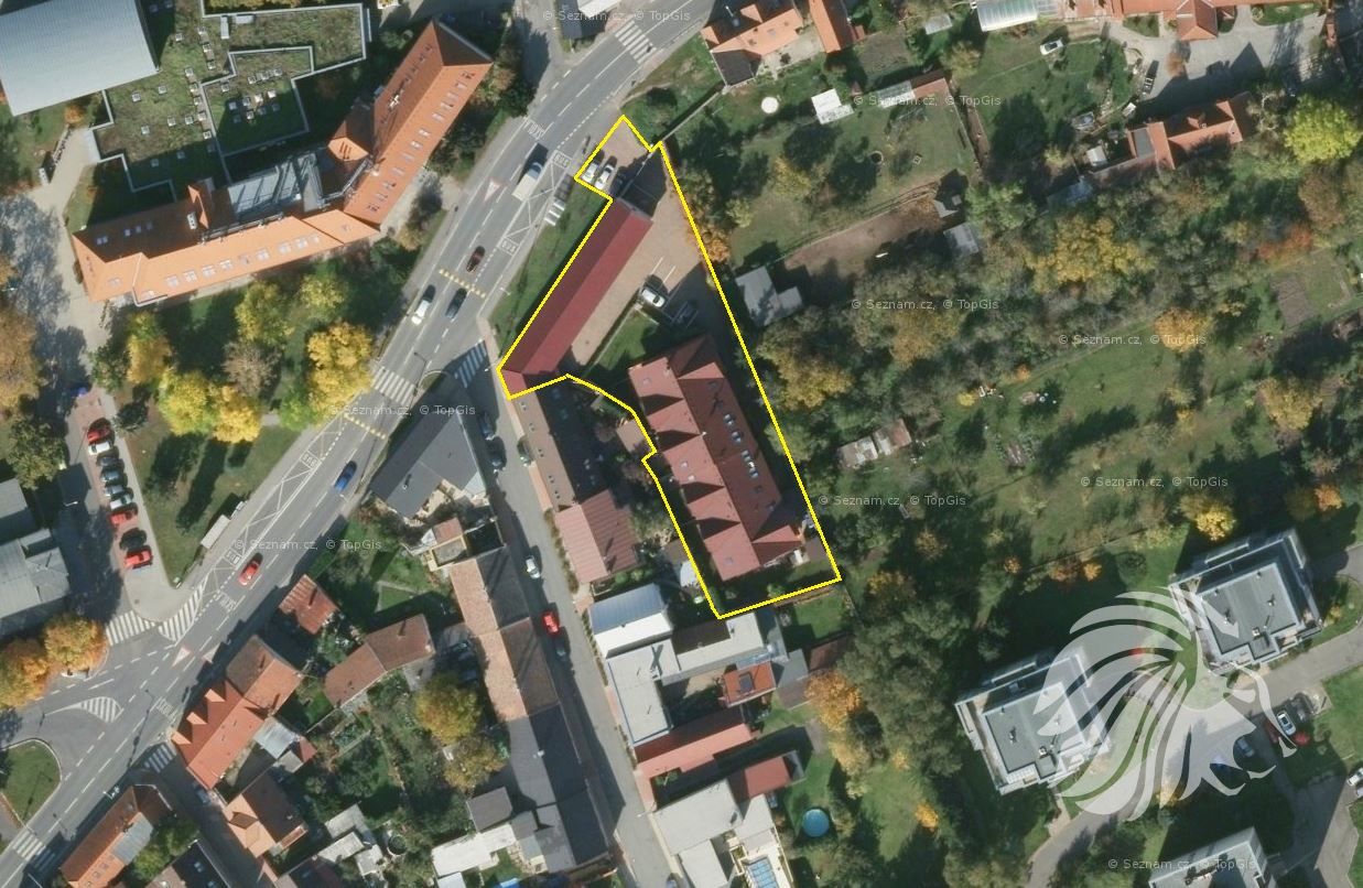 Uzavřený areál tvoří dvoj-dům v řadové zástavbě s bytovými jednotkami, dále zatravněný dvůr s posezením, který je možné využívat. Parkovací a manipulační zpevněná plocha a další stavby s garážemi a komorami. Celý prostor je chráněn zdmi, ploty a pojezdovou branou na dálkové ovládání.
