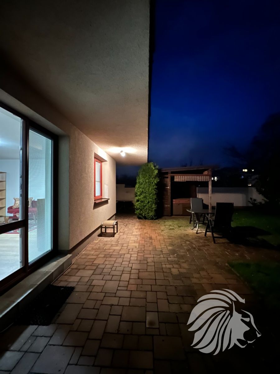 Terasa a zahrada: Sousední zahrada není oddělena plotem. Je taktéž okrasná