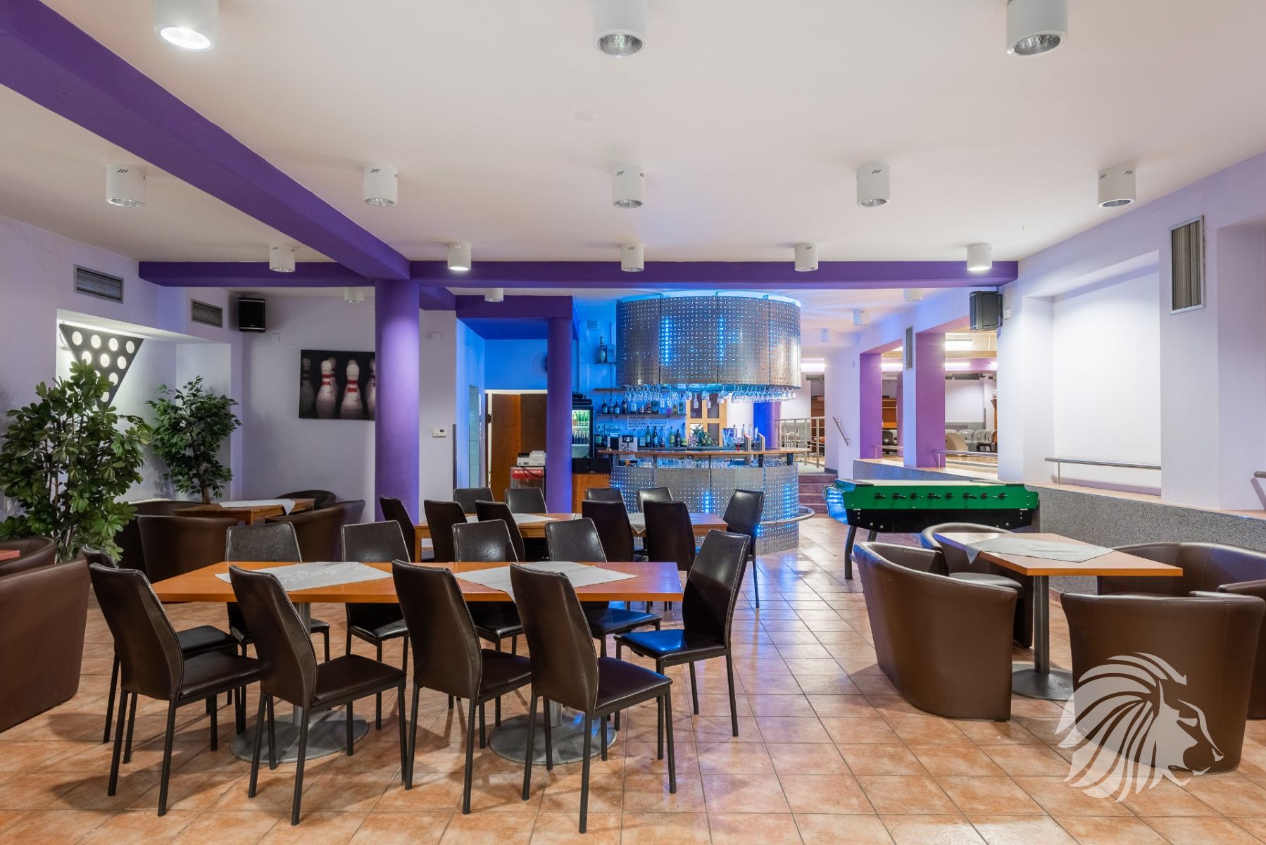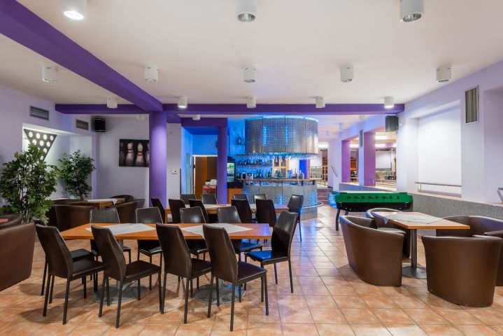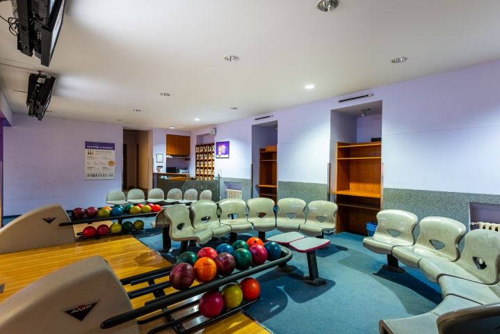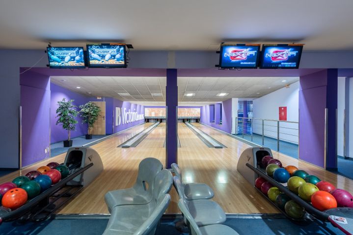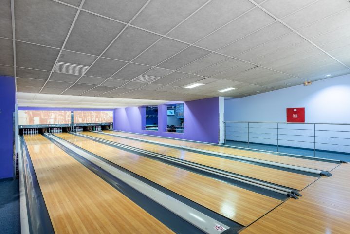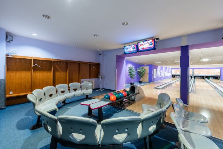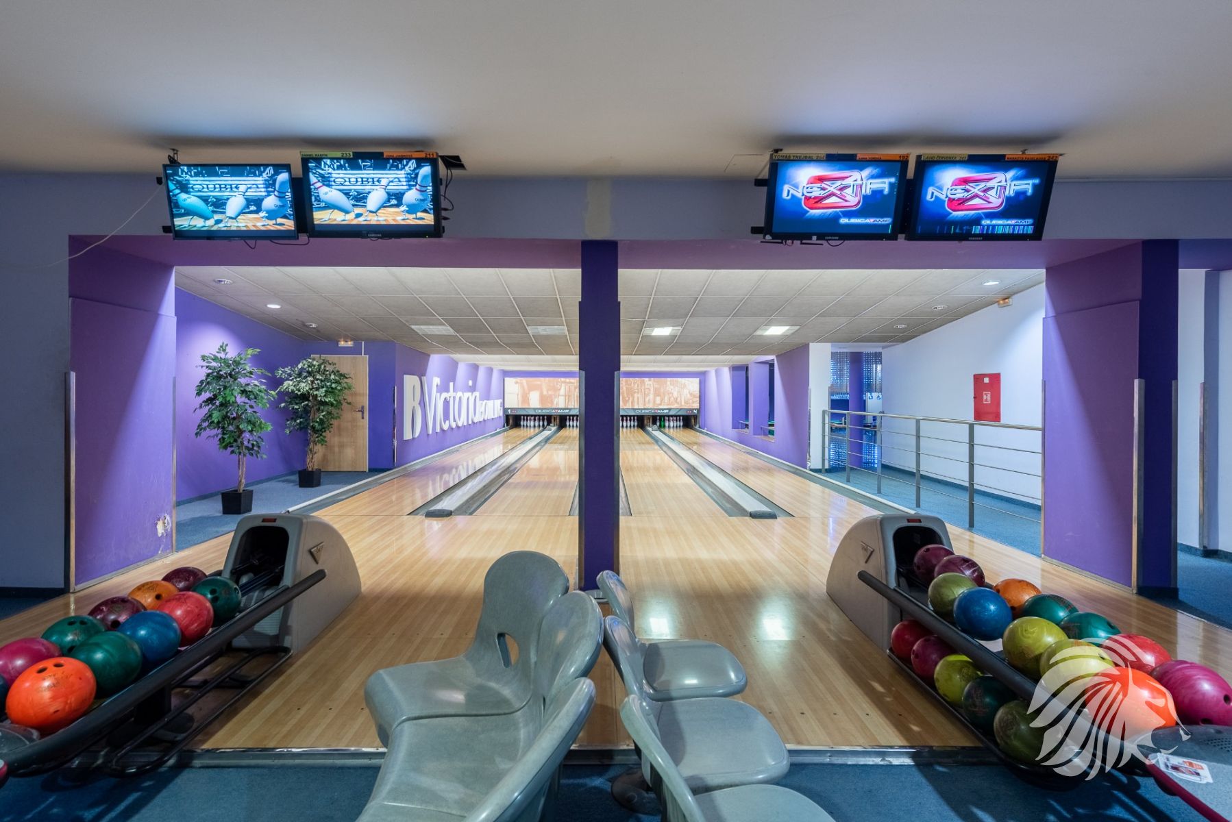 - bowlingová pravidelně servisovaná čtyř-dráha od firmy Qubica AMF nabízí přední část s rozběžištěm, 4 TV obrazovky pro sledování hry, nástěnnou šatnu, prostor s posezením pro hráče a bar s výdejem obuvi.