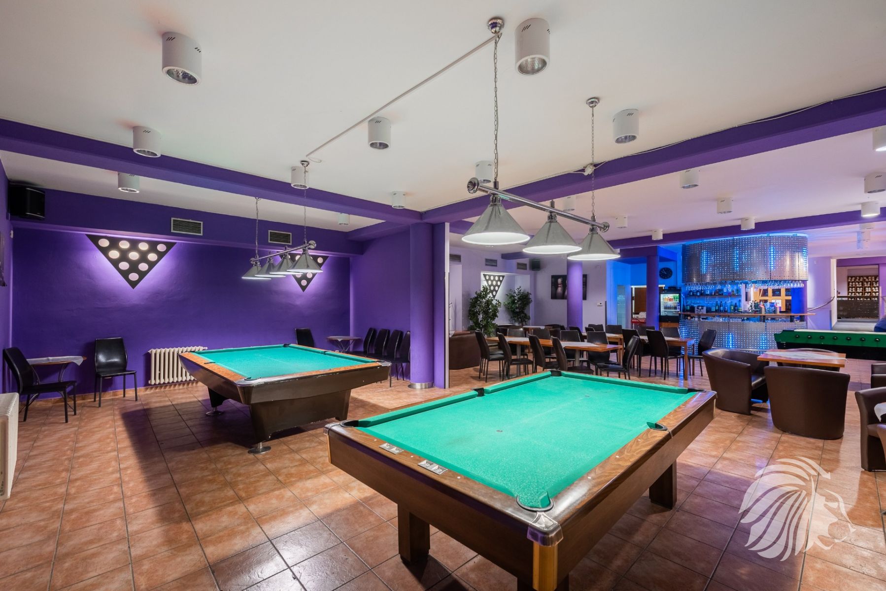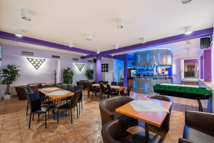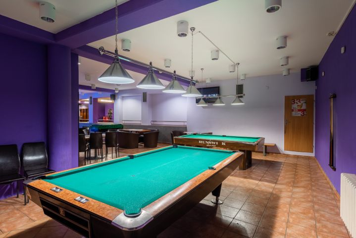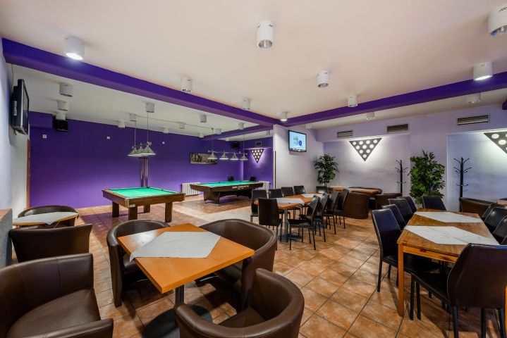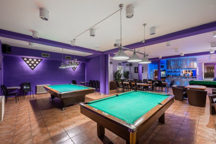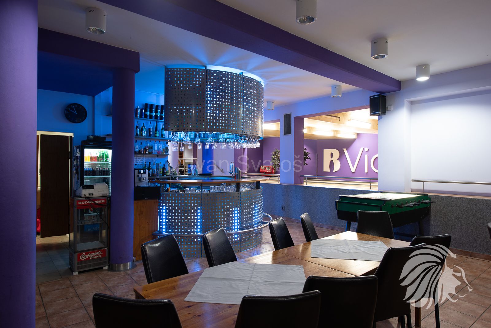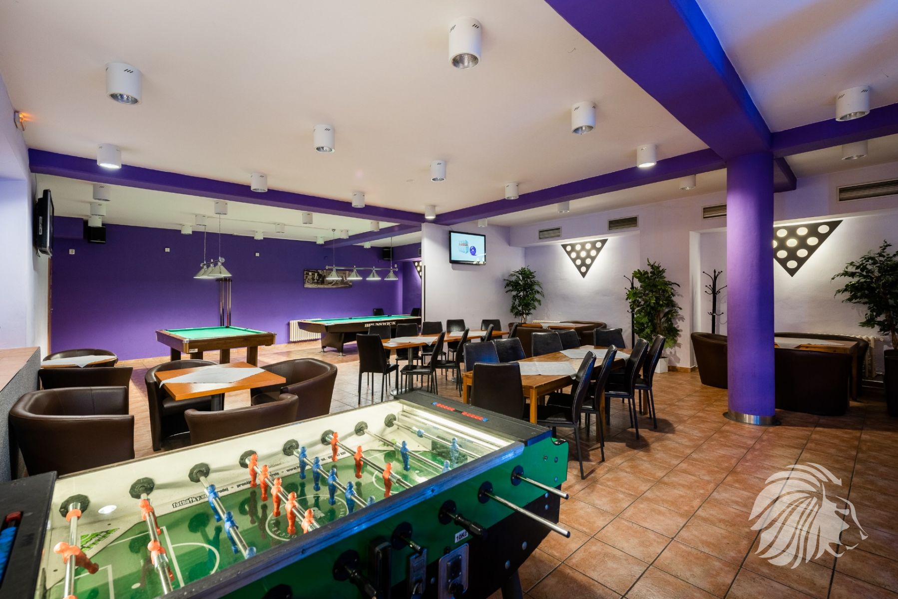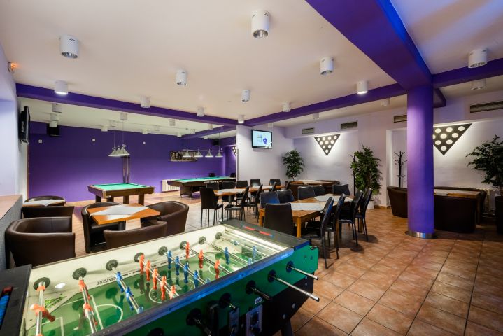 - bar s nynější kapacitou až 40 míst. Změnou rozmístění vybavení lze kapacitu navýšit. Zadní část baru slouží jako billiardová herna se 2 poolovými stoly a příslušným osvětlením. Prostory jsou vybaveny stoly a židlemi/křesly, 2 TV na stěnách a stolním fotbalem.