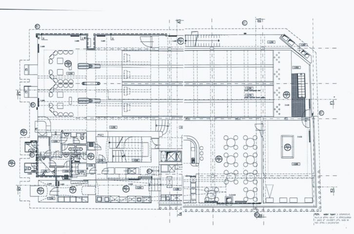 - zázemí za hlavním barem s toaletami pro personál, úložné prostory a místnosti, kde lze zřídit např. kancelář se samostatným vstupem z veřejného schodiště domu. Dále částečně vybavená kuchyně (nyní nevyužívaná)