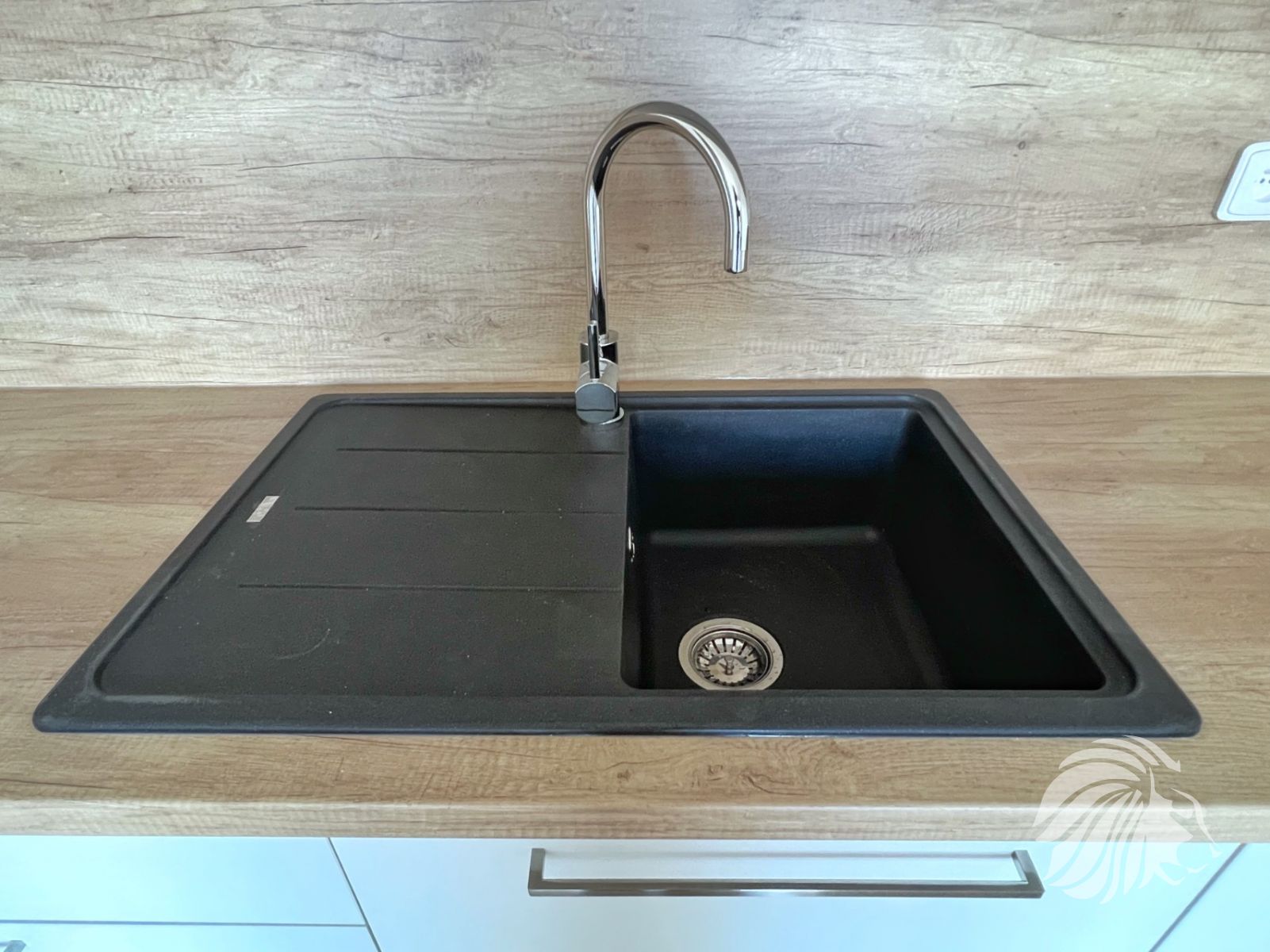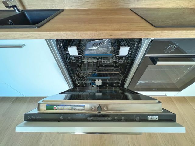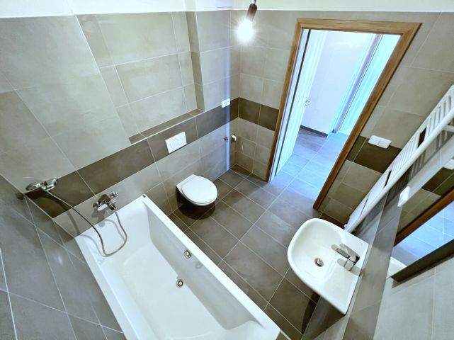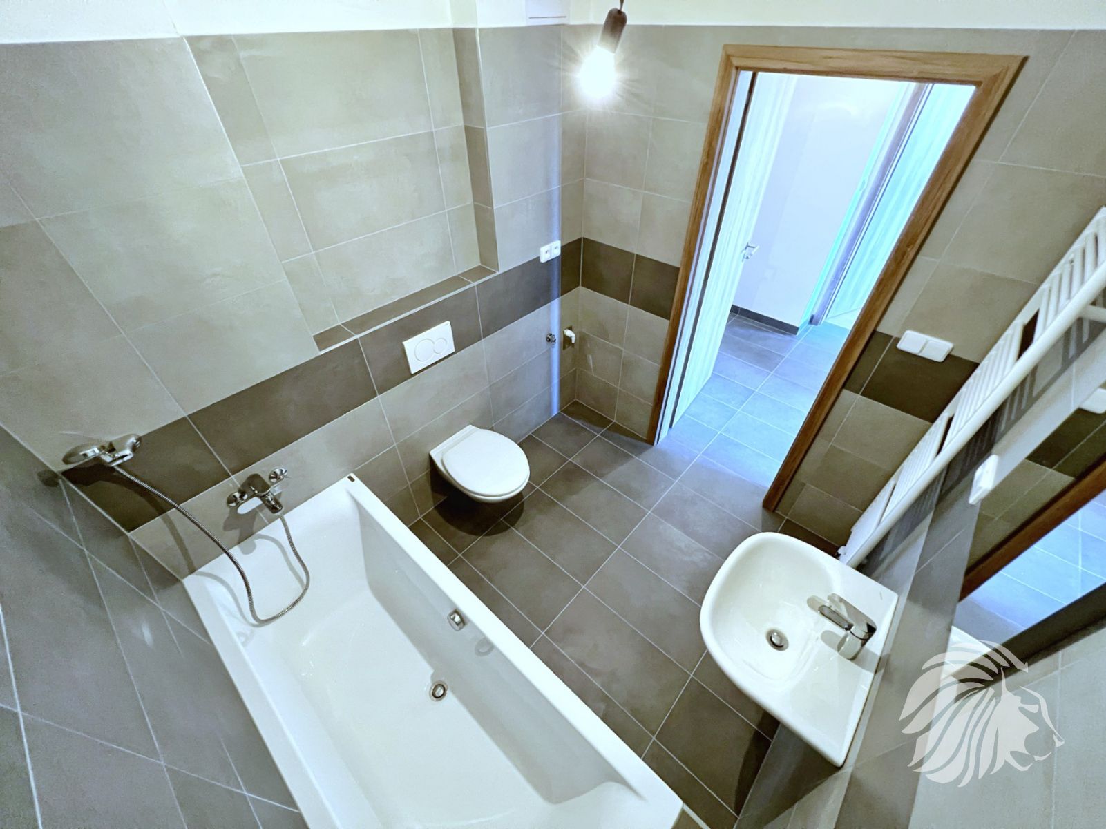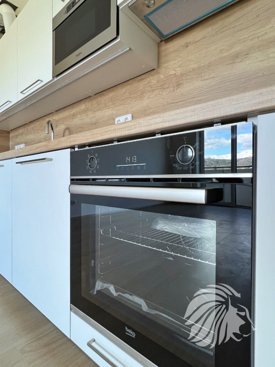 Kuchyňská linka ORESI se spotřebiči ( lednice s mrazákem, myčka, digestoř s odvětráním do komína, horkovzdušná trouba a mikrovlnka). Vstupní protipožární bezpečnostní dveře. Podlahy pokryty plovoucí podlahou EGGER 7 mm v dekoru světlého dubu. Dlažba a obklady RAKO řady Extra. Vytápění a ohřev vody zajišťuje centrální plynová kotelna v přízemí domu. Samostatný měřič tepla. V koupelně vana, topný plynový žebřík a přípojka na pračku. Okna plastová šesti-komorová trojskla. Vnitřní parapety plastové, venkovní lakovaný pozink. Datové a televizní přípojky v každé obytné místnosti.