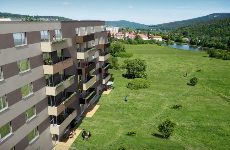 Byt včetně balkonu je orientován na východ s úžasným výhledem na brdské kopce a přírodu. Místnosti jsou neprůchozí a samostatné. Obývací pokoj s kuchyňským koutem nabízí dostatek prostoru na obývací část i jídelní stůl. Velkoryse řešená koupelna je spojená s toaletou. Balkon je přístupný z obou místností.